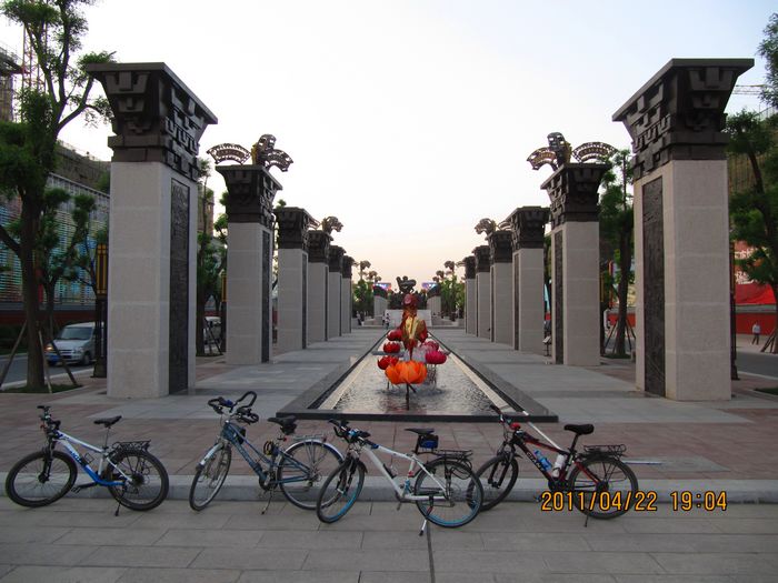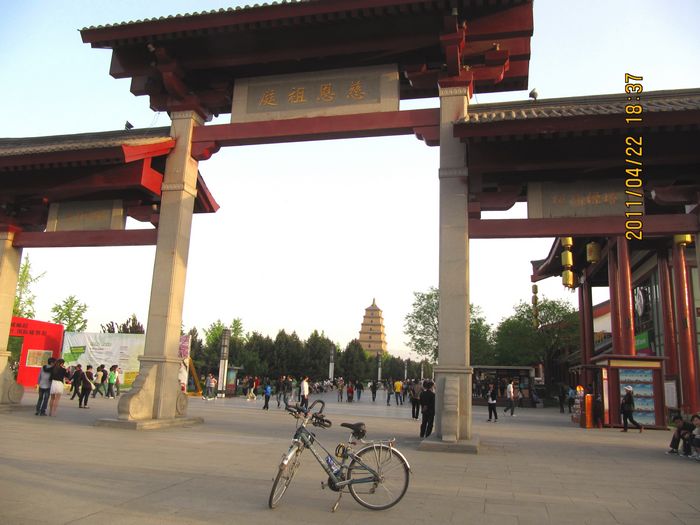 照片描述:下午修完车再次来到大雁塔。我们所有人骑车觉得后面发飘,主要是没有行李压着有点不会骑车了。