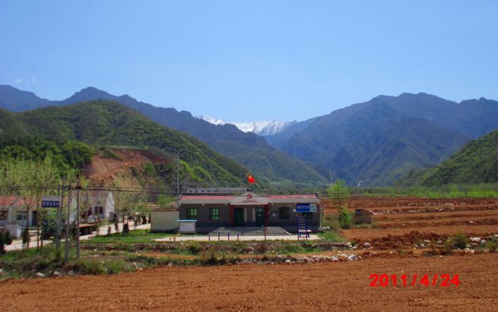 照片描述:骑行时看到远处的雪山。秦岭的主峰:太白峰。