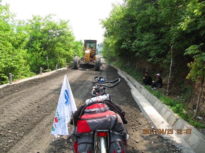 照片描述:去往大昭驿站路上有修路的地方。