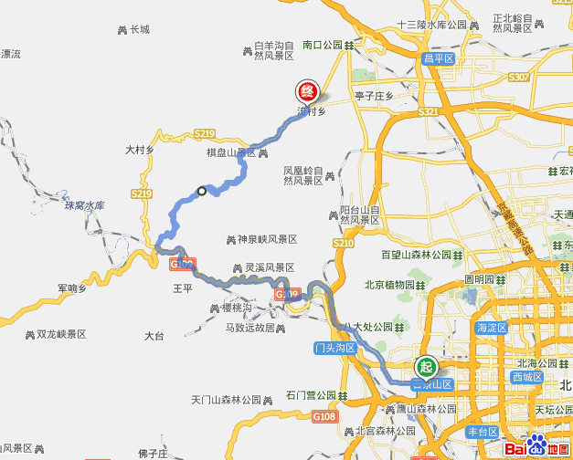 北京航轮店门口出发--东方红--芹峪口--菩萨鹿--流村--阳坊--颐和园--返回航轮