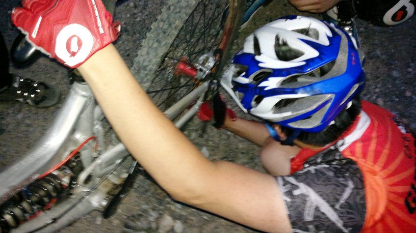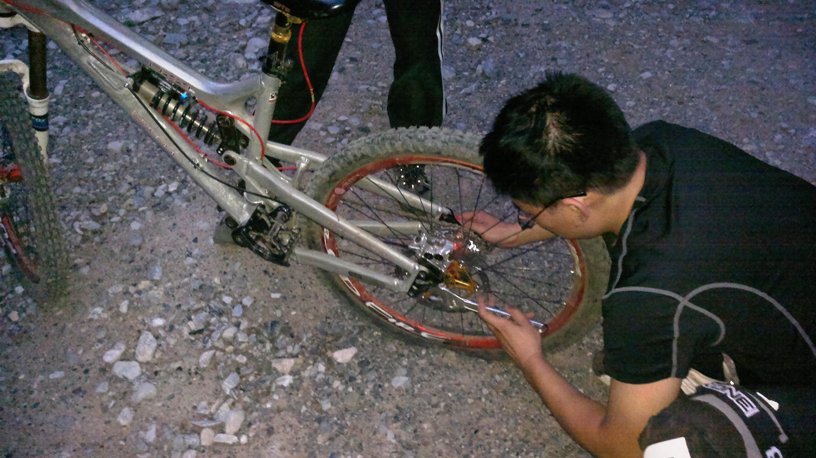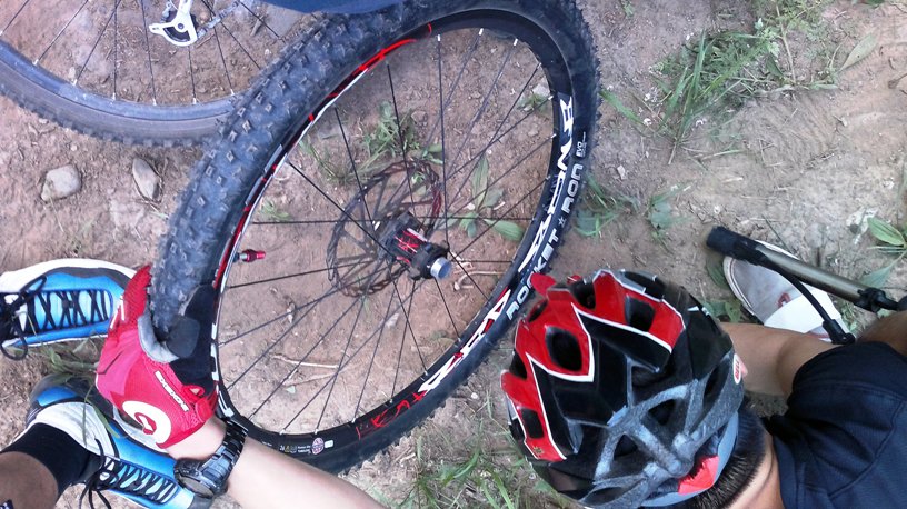 苹果的真空胎都给蹦爆胎了,140的前叉完全打底。