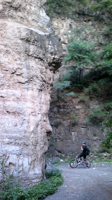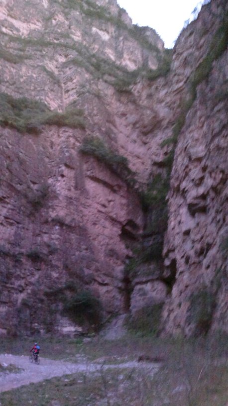 峡谷最后一段,8点多,天已经黑了。享受了一次抽象派放坡,两边是黑色的,头顶和脚下微微泛着白色。