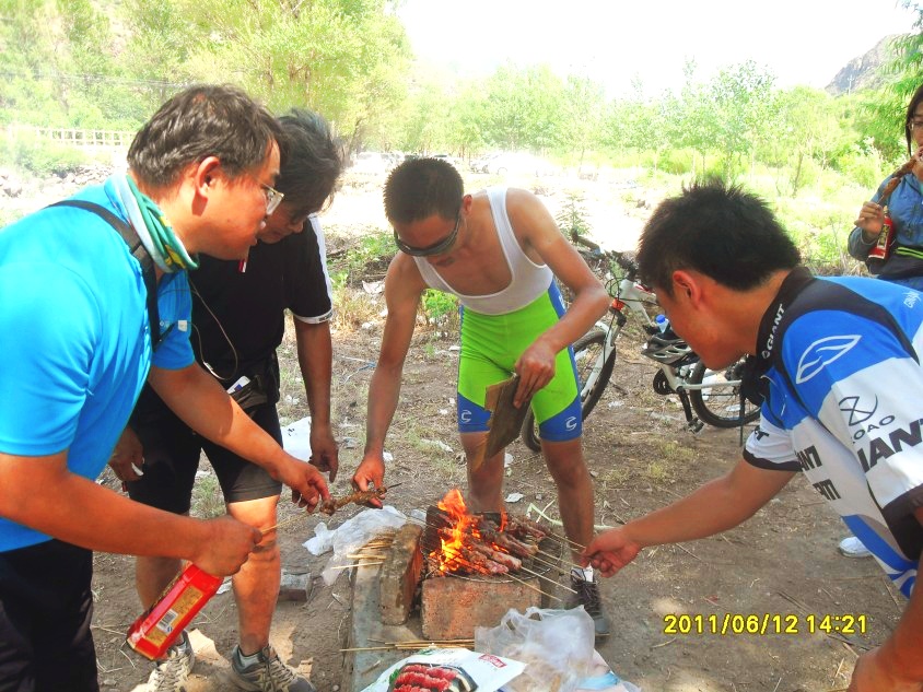 报名截止日为周六上午10点00分 不接收空降和外挂 报名的车友,周日如有事来不了,请周六10点前取消报名,因为我们是根据报名人数来采购食品的,周日您如果放鸽子,我们会在论坛上给予批评谴责。 由于夏季天气炎热,请新车友至少带上4瓶矿泉水。 带上手电筒,东方红隧道很长(500米吧),隧道没有灯光。 上次带新人活动(野外烧烤)组织的很成功,很多新人车友朋友由于诸多原因没能参加,近期又有很多新人车友加入我们风云大家庭,应广大新人车友的要求,我们再组织一次带新人野外烧烤活动,这次中午FB节目依旧是野外烧烤,与上次不同的是,这次不用大家自备烧烤食品(有些车友购买食品比较麻烦),为方便大家,这次活动将由豪客统一购买烧烤食品,总费用由车友均摊,豪大依旧开上他的黑色“小坦克车”作为服务后援车。因为是带新人活动,骑行起来没有速度要求(会很慢),上坡时可能还会推车前进(望老车友谨慎报名,尤其是QS会憋出腰间盘突出的),但我们风云单车的骑行文化永远是不抛弃、不放弃。 带上你的嘴,带上你的胃、带上你的人民币,带上你垂涎炙热的心情来参加活动吧,这里有羊肉串、鸡翅串、骨肉相连串、馒头串、辣椒串……等着你来消灭,这里有风景如画的美景等着你来欣赏,这里有永定河源头的潺潺溪水等着你来耍戏,这里有团结友爱的车友等着你来交往......
