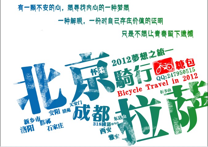 其实人的一生 忘记的总是 美好的的事情 反而等老了能记得最清楚的应该就是那些 最辛苦最最难忘的的事 就跟军人一样 没有一个军人会忘记 你的上下铺 陪你受罚的战友 每次朋友聚会吃喝玩乐 等等 老了我想基本忘记的差不多了 所以我想用人生中的28天 体验酸甜苦辣 享受生活 完成我第一个梦想 我的2012梦想之旅 骑行拉萨 一个让人心静的地方 一个纯净 距天堂咫尺之遥 会让我终身难忘 还有这个问题和问人生的意义一样!