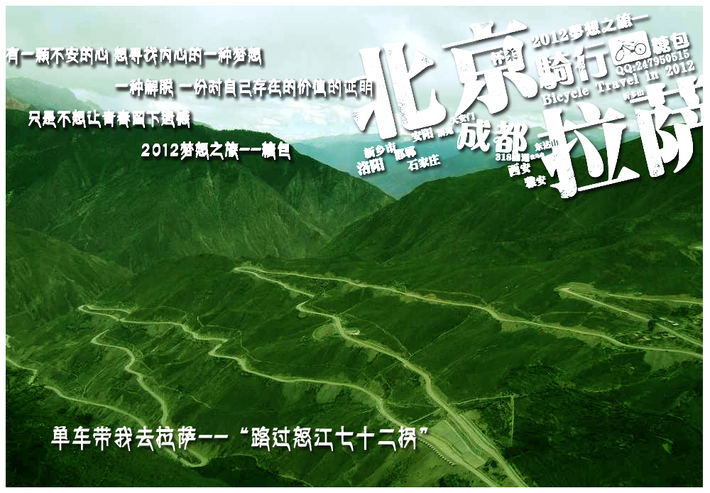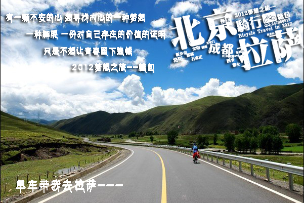 其实生活就象在路上,只是生活的路上太容易迷失,常常会找不到方向.而骑行的路上我清楚的知道自己要去哪,要看什么风景,还有每天的任务.我希望我生活的路上能象骑行的路上一样让我充满勇气和决心....