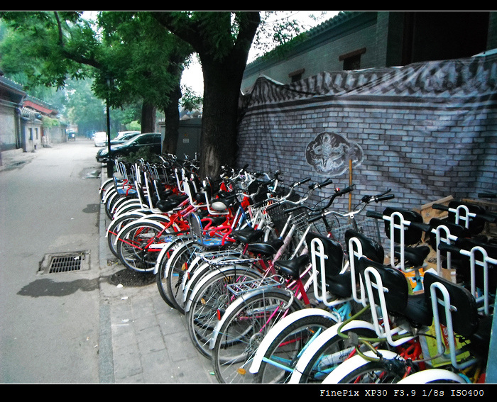 后海还有不少出租多人自行车的,后海那么多人,怎么能骑得爽呀!