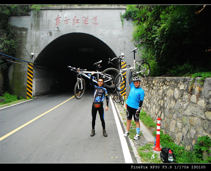 出去不到一公里,莫名跟我一样的摔车法:跟骑,前面转向,他没转过来,撞栏上面了。
