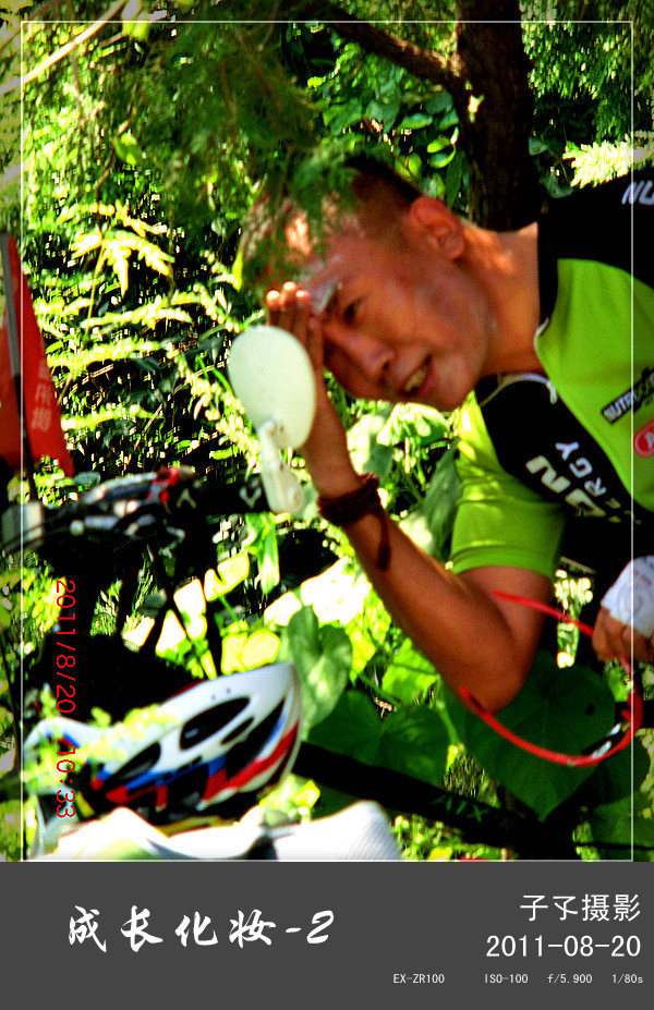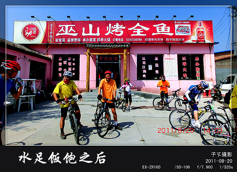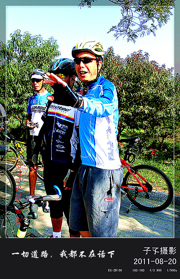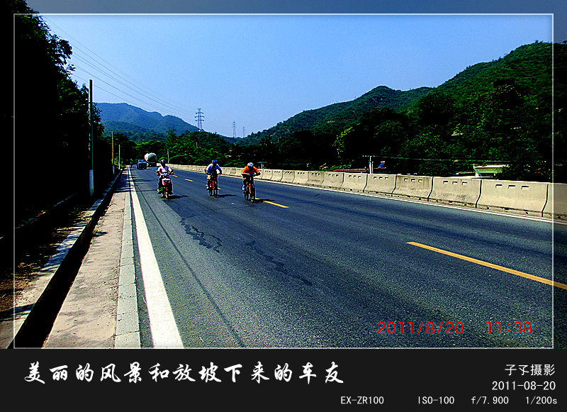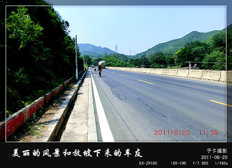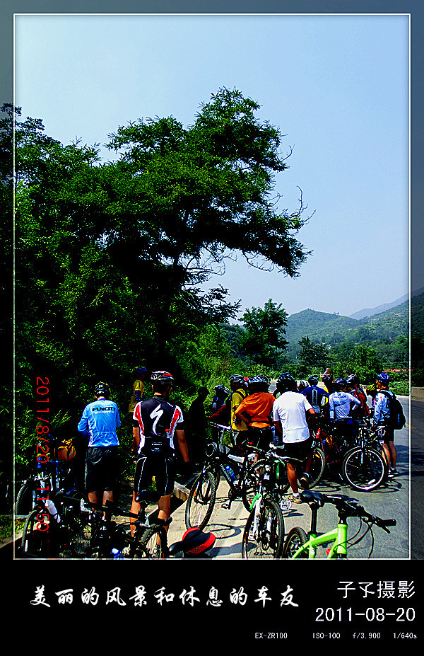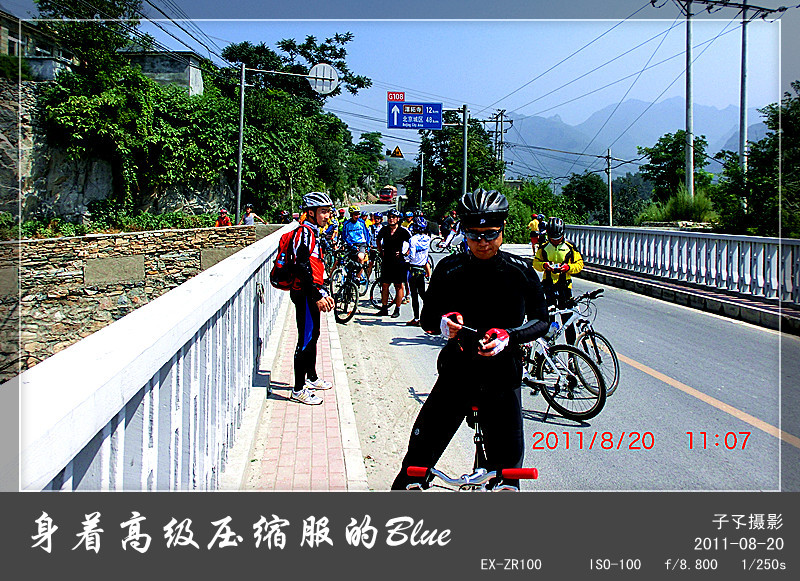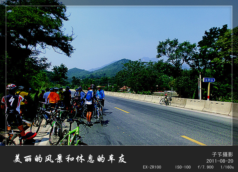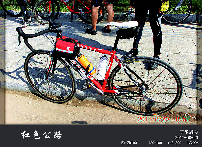 因为前一段时间出差,三周没有怎么骑行了,这次跟随成长组织的京西帮的第一次活动,遂决定第一次骑行公路车。 这条线路虽然去过的人不多,但成长和汪哥、满队选择的很好,强度不大,距离不长,很休闲。一路有上坡,有下坡,而且感觉上好像上坡短,下坡长,沿途的风景也很好,还能看古迹,还能看猴子,也能去吃老海涮肉。 立秋的天气有些晒,温度稍高,但是感觉还好,山风习习,汗水滴滴。因为人多,沿途发生的情况也较多,所以休息和等人的时间较长,大家相对聊天和开玩笑的时间也较多,但耽误的时间也较多,事后一些资深骑友一致认为,这条路线半天时间拿下较为合适。 在骑行的过程中,发现Blue的单速单车很漂亮,大红的轮圈和车座的颜色很有特点,一些骑友骑的红色的单车也是一道亮丽的风景线,随拍摄了所有的参加活动的红色单车,以作展示。 说来也巧,活动结束后,与汪哥分手前,汪哥对我说:“子孓,我发现你很喜欢白色,山地车是白色的,公路车也是白色的”,我说:“汪哥,我的汽车也是白色的……”。也许人上了点岁数,更喜欢的是淡定、含蓄和低调。 第一次骑行公路车的感觉:平路速度快,爬坡费点力!骑行姿势较低,脖子有点累,但手不会发麻! 今天送了两幅早已写好的字带给车友哈密瓜和天下独行,他们都很喜欢。看来,沾点文化气息的东西,大多数人都是乐于接受的,文化的氛围和底蕴还是不可或缺的,包括单车骑行。 这次活动的其他内容,其他车友的作业里写的很多了,可以省略N十个字,在这里仅谈一点自己的感受。 骑行总里程:113公里 骑行用时:5小时53分49秒 平均时速:19.7公里 最高时速:54.6公里