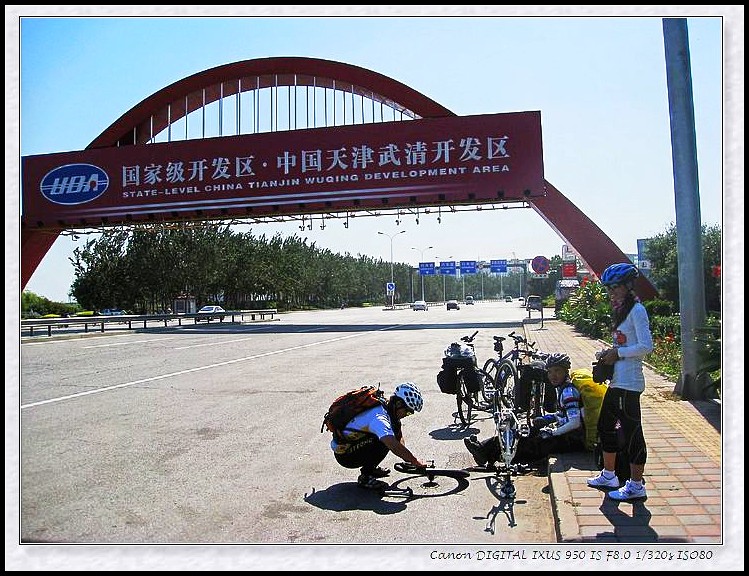EZ成功带我们穿越天津市区,与格林会合,似乎顶风骑行就是从这时候开始的,之后的骑行路上只是风大风小的区别