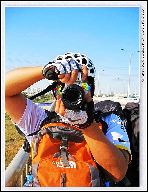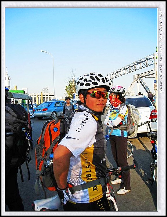 路上偶遇了不少骑友,只是目标不同不能搭伴同行,直到遇上了茶凉、六零、蚊子、格林、EricZ五人众,只是他们第一天的目标是天津滨海新区,而我们第一天的目标是黄骅,后被他们的沿海公路吸引,我们改变了路线,搭伴前往天津滨海新区。