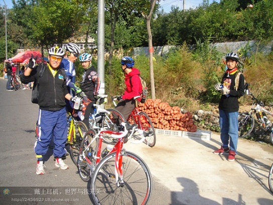 题注: 一整天:10月15日周六 两条线:根据强度分了两个组别 三种色:11款美利达R-904三种颜色凑齐了 四级风:刮了一天的风啊,真要命 五个字:东方红、大村、高崖口、菩萨鹿、反爬东方红(凑了5个字) 六菜鸟:群主-文森特、复出老鸟-眯眯、Ricky和他的一位车友、上帝禁区、老郭 4:30家住长子营的文森特就起床了,路远伤不起啊!5:30分亦庄迪卡侬和上帝会和,6点多一点在肖村桥捡上眯眯,7点马家楼会和老郭,8点赶到了首钢早餐店,Ricky已经赶到,面条、包子、鸡蛋、烧饼、咸菜、稀饭,你敞开了吃Ricky的车友也及时赶到,大家吃喝已毕,出发,走爱玛裕、双裕路口奔向109,永定河边、妙峰山镇、担礼隧道、下苇店村,偶遇了车友无数啊。特别是Ricky遇到了另一个群里的骑友组团奔向幽州村,叙旧、鼓励好不热闹,群主免不了介绍介绍我们的群,恪尽职守啊,赞一个。 到了东方红脚下,等了一下稍慢的兄弟,文森特同志由于刚换了红色904,按耐不住兴奋之情,直接爬坡走了,我们凑齐人手开始爬坡,这里开始体会风的威力,吹得我们东倒西歪,各种的顶风、各种的侧风、各种的费力啊,骑到东方红隧道口,文森特已经在那儿等候了,换了公路果然给力啊! 穿过隧道放坡,过了雁翅到高芹路口,在此分成两队,眯眯、文森特、Ricky的车友三人走高芹路奔高崖口,上帝禁区、老郭、Ricky走大村奔高崖口,在高崖口会和,然后午饭。 我们走大村的这路开始爬坡,十来公里的缓坡加上风就感觉有点吃力了,绷着劲一口气到顶,还偶遇了两个去官厅水库的男女骑友,到顶了等着Ricky,欣赏这路边的红叶、黄叶、绿叶,风景迷人啊,后来发现不经迷人,而且冻人,我和上帝禁区开始发冷,甚至开始哆嗦了,各种的冷啊,期间联系文森特打听情况,招来一顿喷,事情是这个样子滴,菩萨鹿那条线骑友们评为B级路线,我没有走过,认为B级肯定好走啊,告诉他们说是抄近道,且是平路,谁知道一路的坡,好家伙电话里喷的我都毛了,琢磨见到他们会不会有生命危险啊!怕怕! 终于,Ricky出现了,没做停留直接放下大村,奔高崖口,过了大村缓上的路遇到一只小狗,被我各种的挑衅、吓唬蒙了,望着我们远去,没敢吭声,据后来的Ricky说他路过的时候狗狗各种的狂吠,被连累了,悲催啊! 过了检查站等着Ricky,摘酸枣吃,还幸运的拣到一个核桃,当时就踹开吃了,肿么这么香啊!嘱咐Ricky补充给养,然后开始爬高崖口,登顶后等候Ricky,说实话,这兄弟真挺棒的,我们刚开始骑车哪敢走这路线啊!高崖口的风才叫风啊,眼看着一速腾停下来看看风景,车门都关不上啊,费老鼻子劲才关上赶紧闪了,我和上帝窝在小弧形墙下面避风,明显的是冷、饿交加啊,终于等到了Ricky,放坡,这13公里坡放个爽啊,期间眯眯灰常灰常执着的给我打电话,放坡中不想接,没完没了的打,没办法,接完才算消停,村口会和三位兄弟,看到文森特情绪明显低落啊,偷偷打听了下,爬坡爬的,我 这个汗啊!不会扁我吧! 开饭啦,汤足饭饱,准备回家,此时已经是16点了,他们要走流村平路返城,我和上帝禁区准备走菩萨鹿,一是还未尽兴、二是体验下到底是什么坡惹得文森特不高兴,反爬一下一平衡平衡! 就此分手,各自上路,走过后发现这个坡并不陡,只是稍长,关键是上帝又吃坏了肚子,N次钻入树丛~~~~~,六点赶到东方红脚下开始反爬,放下来奔向担礼隧道口,走妙峰山镇,在此偶遇了单飞走八个字的大侠,表示敬佩,到了首钢门口,电话联系另一路在北三环,上帝直接奔向公主坟,会和他们,我从玉泉路分手奔回新发地! 后话:据说文森特23:30才回到了长子营