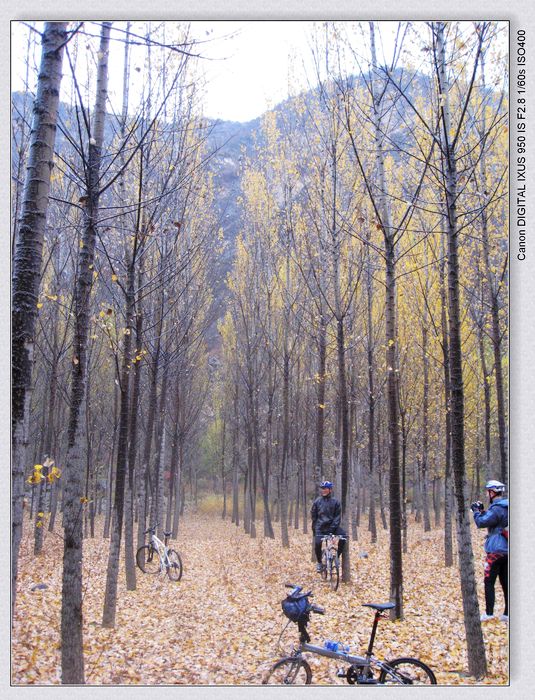 山顶太冷,没敢长时间停留,告别山顶偶遇的折叠车友,六人放坡,去征服大小庄科