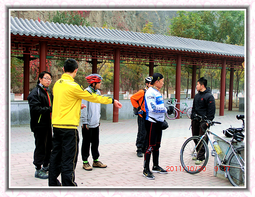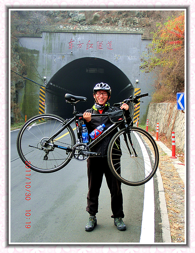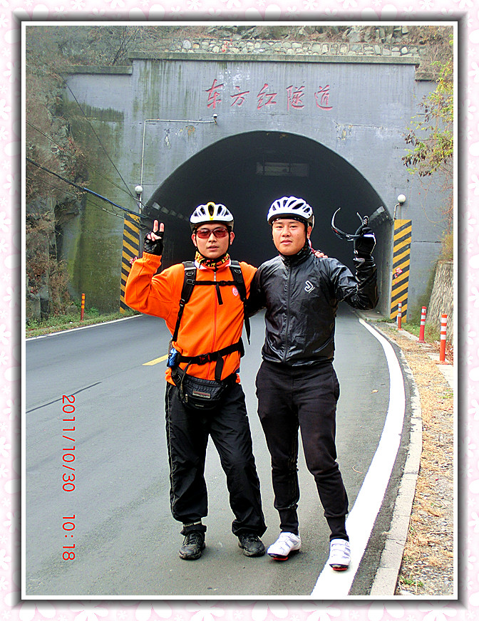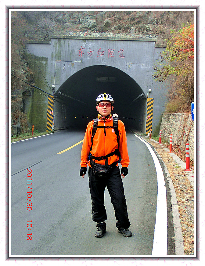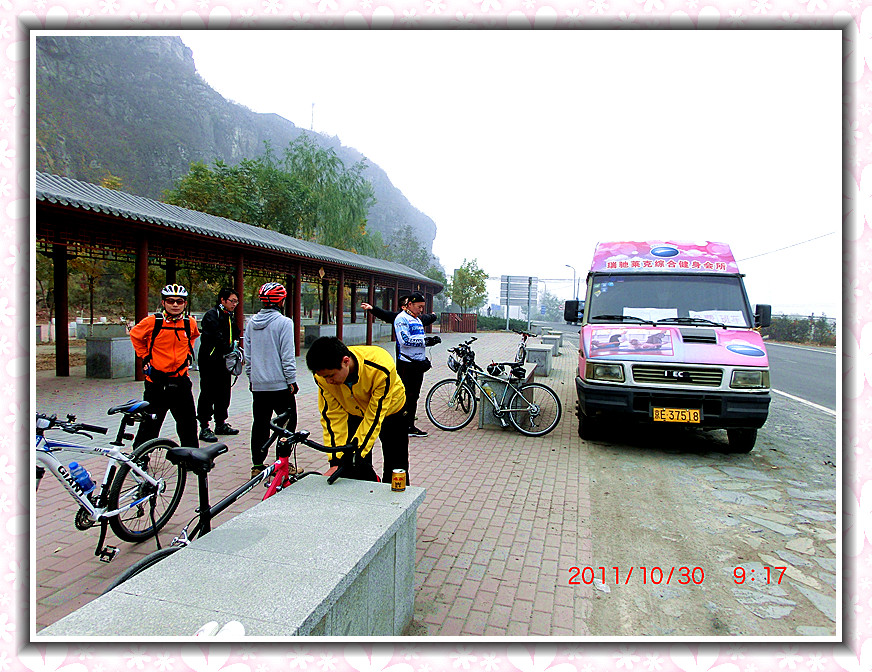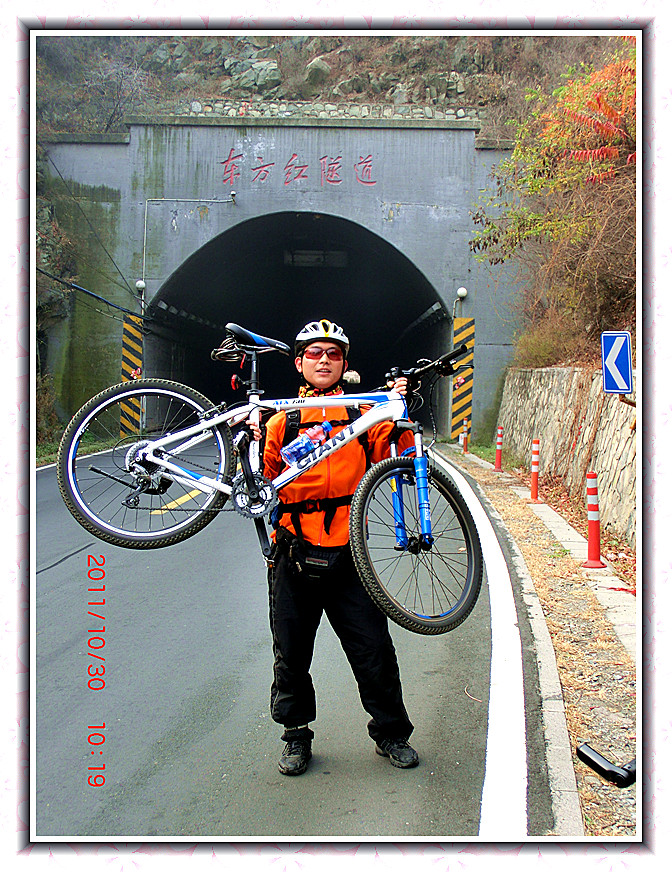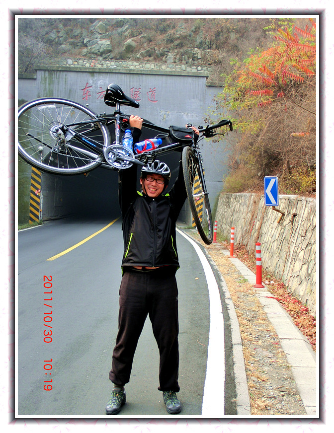 因为10月29日单位有事,只盼着30日星期天能顺利出行。在网上找到瑞莱骑行发布的30日珍珠湖烧烤骑行活动贴,心动、兴奋。 30日一早5点40起床,6点40出发,7点50赶到双峪环岛集合地点,8点30出发奔向担礼隧道,依维柯后援车紧随。到担礼隧道人员集合整齐,共有九人:北京老石、乐扬、幺花、靓白眼膜、青山E旧、小追、子孓、瑞莱骑行、季伟(骑行健身教练,负责开车)。 FB从一出发就开始了,人少——6人骑行(3人坐车);依维柯后援——腐败吧?东西多——吃的喝的一大车;道路悠闲——只有一个东方红隧道的缓坡;珍珠湖沿路风景优美——有照片为证;烧烤内容丰富——肉串(两种)、鸡翅、大腰子、鱼、骨肉相连。。。。。。橙汁、绿茶、葡萄汁、苹果汁、烧饼。。。。。。,最后还剩了一大半。 FB,超级FB的标准就是:人少好组织(水平都差不多),骑行很休闲,午餐很丰盛,中途遇美女,后援很给力(你们都懂得)。 在上苇甸,偶遇两位美女——绿Q及她的朋友,最后一起登顶,来取照片! 特别表扬一下瑞莱骑行和季伟,两个年轻人都是健身会馆的骨干,人热情好客,落落大方,风趣幽默,身体力行。为这次活动的组织实施出了不少力,凡事考虑得非常周到,得到了骑友们的一致好评,希望他们继续努力,继续组织更加精彩的活动,也希望广大车友继续支持他们。 担礼隧道口集合出发!开始FB骑行