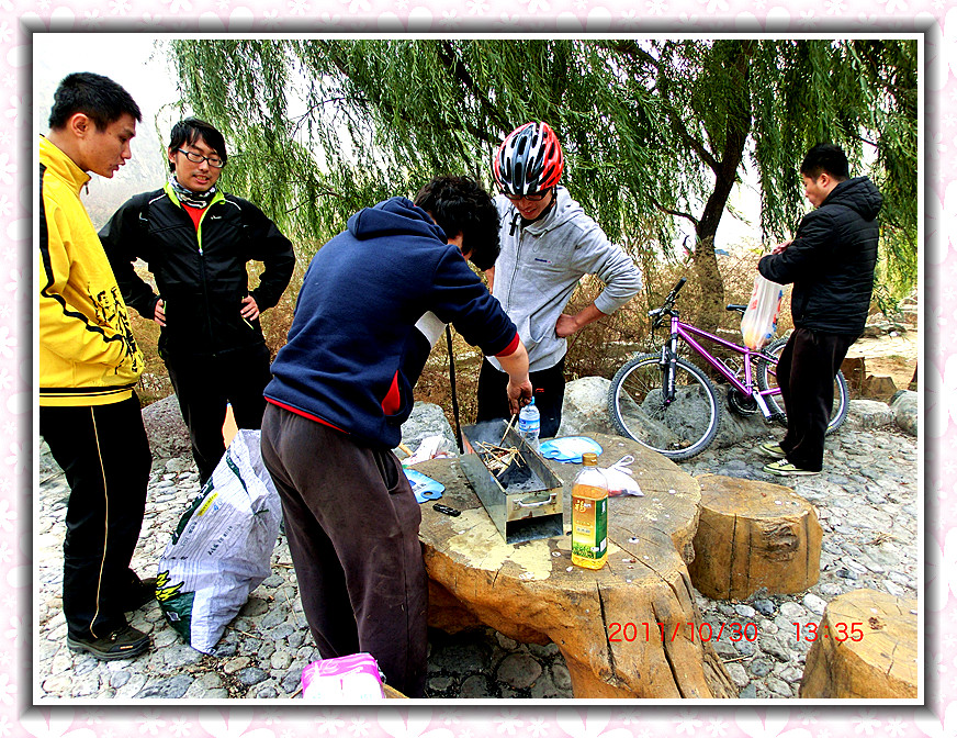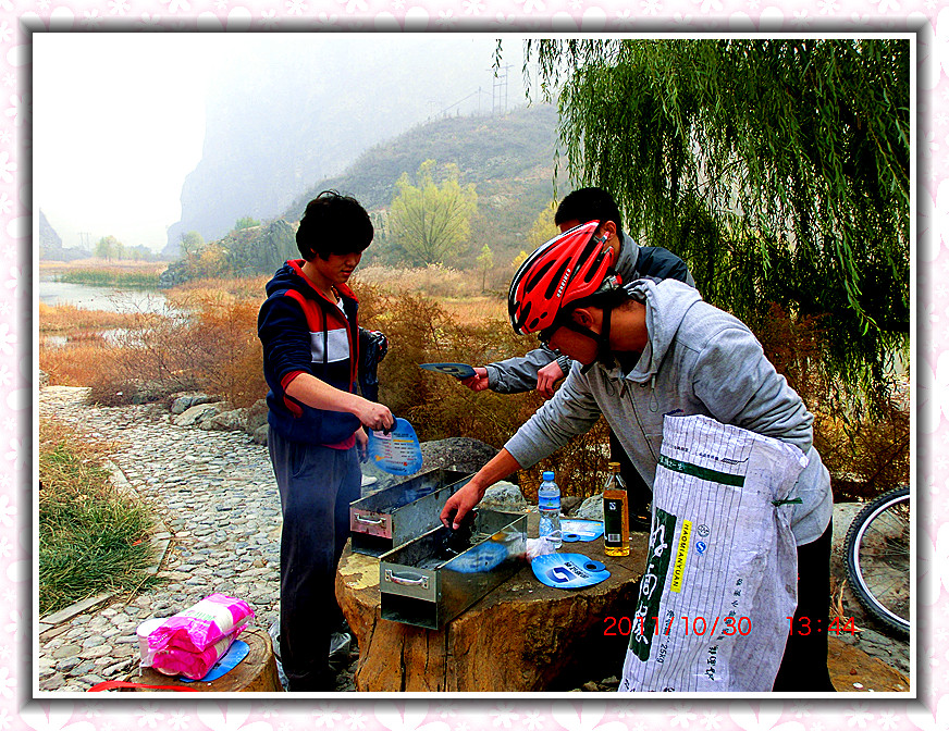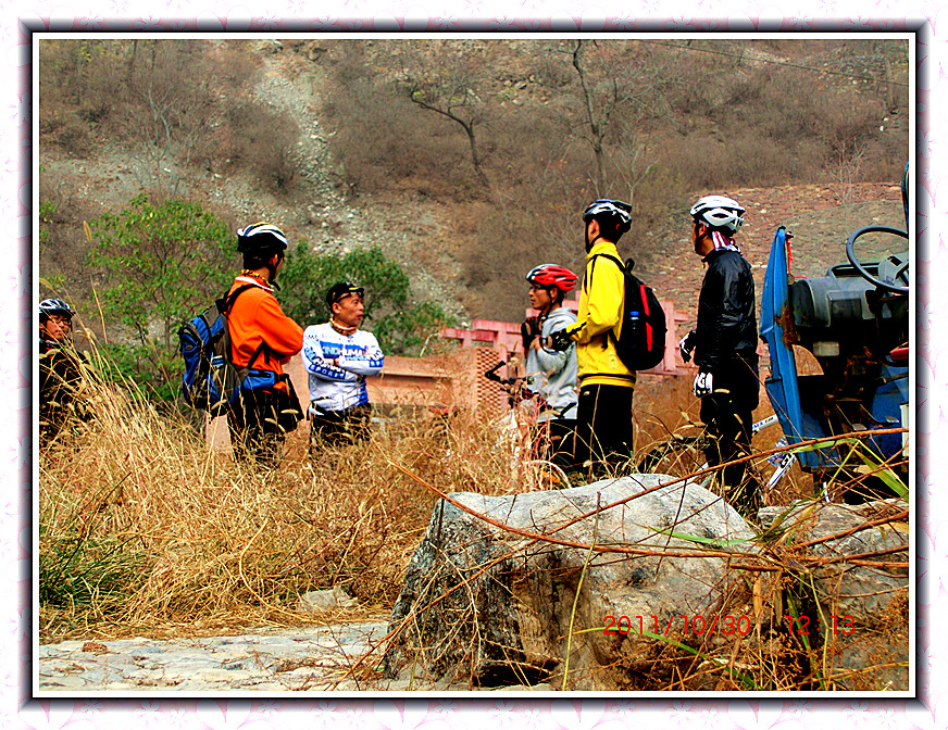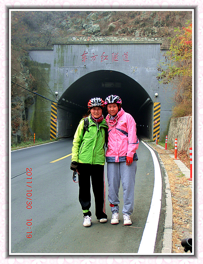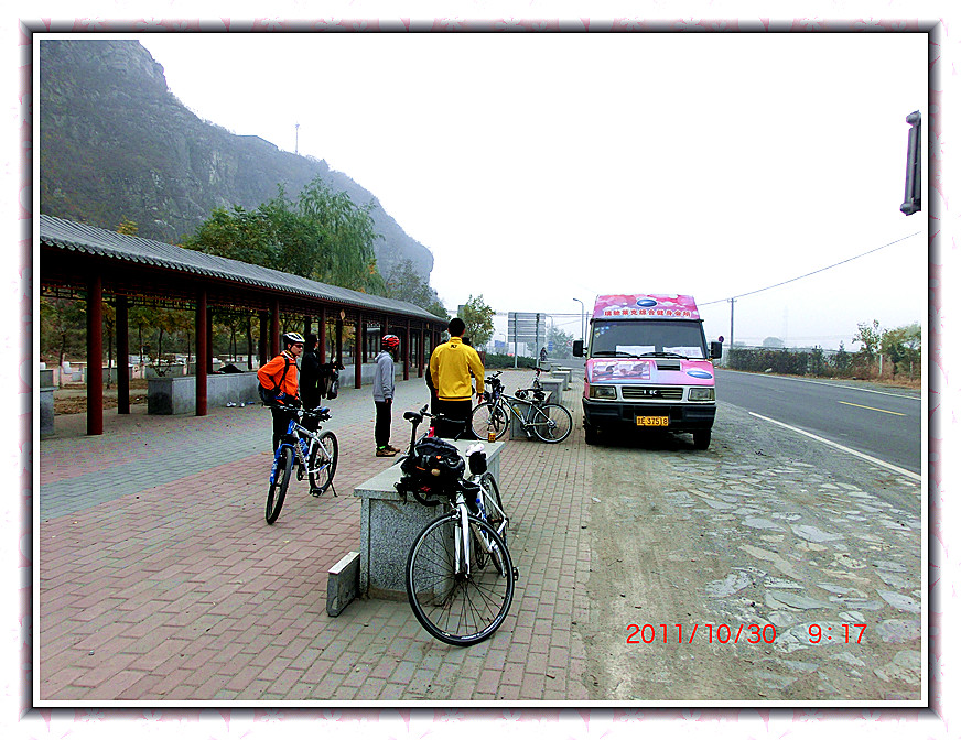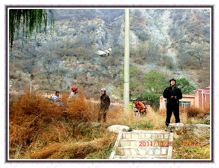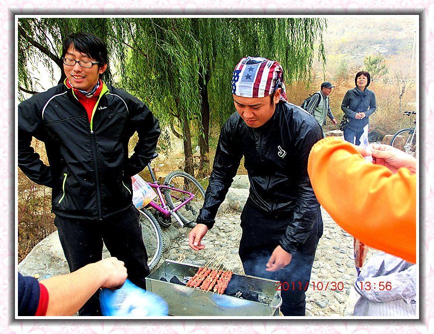 因为10月29日单位有事,只盼着30日星期天能顺利出行。在网上找到瑞莱骑行发布的30日珍珠湖烧烤骑行活动贴,心动、兴奋。 30日一早5点40起床,6点40出发,7点50赶到双峪环岛集合地点,8点30出发奔向担礼隧道,依维柯后援车紧随。到担礼隧道人员集合整齐,共有九人:北京老石、乐扬、幺花、靓白眼膜、青山E旧、小追、子孓、瑞莱骑行、季伟(骑行健身教练,负责开车)。 FB从一出发就开始了,人少——6人骑行(3人坐车);依维柯后援——腐败吧?东西多——吃的喝的一大车;道路悠闲——只有一个东方红隧道的缓坡;珍珠湖沿路风景优美——有照片为证;烧烤内容丰富——肉串(两种)、鸡翅、大腰子、鱼、骨肉相连。。。。。。橙汁、绿茶、葡萄汁、苹果汁、烧饼。。。。。。,最后还剩了一大半。 FB,超级FB的标准就是:人少好组织(水平都差不多),骑行很休闲,午餐很丰盛,中途遇美女,后援很给力(你们都懂得)。 在上苇甸,偶遇两位美女——绿Q及她的朋友,最后一起登顶,来取照片! 特别表扬一下瑞莱骑行和季伟,两个年轻人都是健身会馆的骨干,人热情好客,落落大方,风趣幽默,身体力行。为这次活动的组织实施出了不少力,凡事考虑得非常周到,得到了骑友们的一致好评,希望他们继续努力,继续组织更加精彩的活动,也希望广大车友继续支持他们。 担礼隧道口集合出发!开始FB骑行