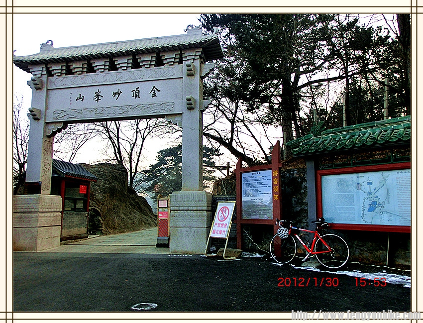 大年初八,天气阴冷,预报最高气温零下3度,上午还飘起了零星的雪花。老婆带着孩子去欧洲旅游了,初九回来。一个假期独自一个人,“孤苦伶仃”,在家憋得实在难受,在“布丁精神”的鼓舞下,中午吃完饭,看着太阳有出来的意思,心血来潮,想独自一个人采用4+2的形式骑上公路车爬一次妙峰山。准备停当,驾车出发。路上车行顺利,一路通畅,把汽车停在妙峰山牌楼底下,背上冲锋衣,跨上公路车沿着21公里的山路直奔山顶而去。一路呼哧带喘,车不停轮,满头蒸汽,一身臭汗的顺利骑到了海拔980米的妙峰山大门口,这里估计有零下十多度,一路上没有遇见一位车友,郁闷!门口售货的妇女一个劲的问候,推销着香火和特产,我问:今天有骑车的上来吗?反问:这么冷的天,骑自行车上来?俨然我已经疯了。我喘了一口气,休息了一会,头盔里面被汗水湿透的绒帽上就结了一层厚厚的冰。浑身都冰冰凉呀,赶紧换上抓贼帽,穿上冲锋衣,戴上厚手套,脚上绑两块塑料袋,放坡下山。45分钟后放到山下牌楼,940米的高度差压得我的耳朵一时失去了听力,浑身冻得也快失去了知觉,手指头也已经冻僵了。赶紧钻到汽车里,开足了暖风,希望尽快恢复知觉。待“神智稍微清醒”后开车直奔丰西老海涮肉,品茶聊天,海阔天空,不亦乐乎! 结论:不是被憋得快要疯了,大冬天的千万不要往妙峰山上冲!受罪呀! 这也算是我2012年的第一骑吧,在这里给风云的广大车友们拜个晚年,预祝大家在新的一年里天天有一个好的心情,周周有一次愉快的骑行,月月有N次超级的FB!