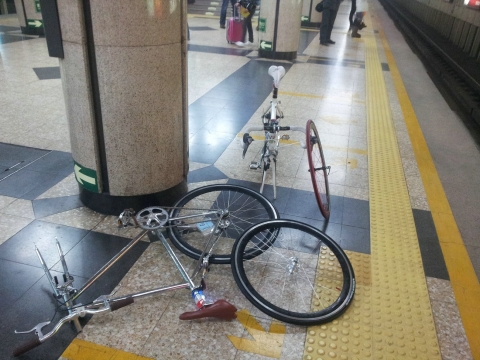 昨天骑车爆胎,第一次享受到了折叠的好处。搭乘公交(车厢比较空),少走了几公里路。