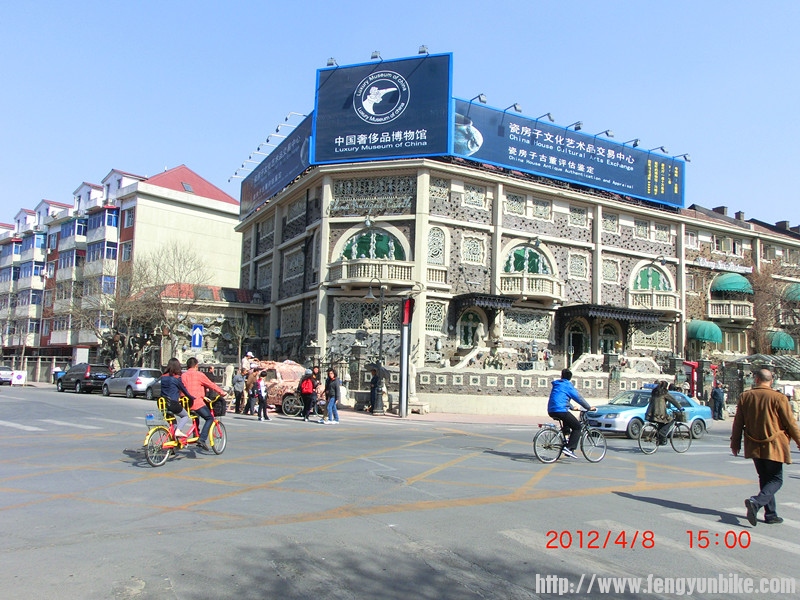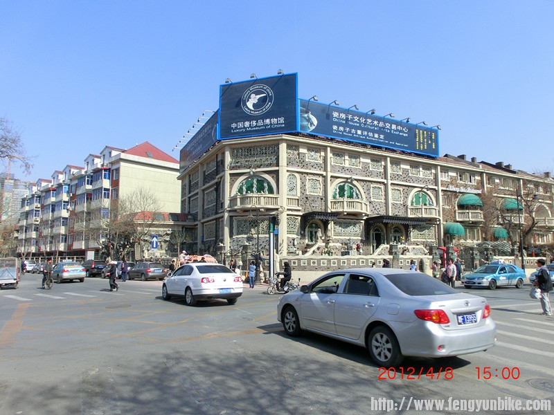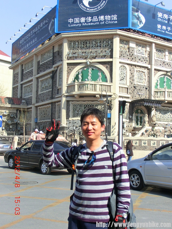因为女儿在天津音乐学院上学,平时有事没事或休息日和节假日大都在天津度过。清明放假, 4月2日参加完车协的活动与车友们FB完后迫不及待的以4+2的方式驾车直奔天津。早与单车SKY他们想利用假期骑车去天津游玩的车友们联系好,我在天津等着他们,3日、4日一起在天津骑游。但由于天气的原因,他们没有按计划成行,推迟到7日、8日骑行到天津。 我在天津闲来无事,主要的任务就是给女儿做饭,陪女儿练琴,积极准备即将参加的国际大赛。夫人到香港出差,说好7日也赶到天津,8日一同返回北京。一切都安排妥当,我在天津就一直等着,期待着这两天的到来。 7日下午一直都没有车友们的消息,发了短信给单车SKY,也没有回复。直到晚上8点来钟才收到单车SKY的回复,由于种种原因他们刚赶到天津,已经安排好吃住,晚上准备夜游天津,考虑到时间已晚,离他们住宿的酒店有约10公里的路程,晚上我就不过去了,约好8日一早10点在他们下榻的四川大酒店集合。 8日早上一大早,我赶到位于河东区的耳朵眼炸糕专卖点排队给车友们买了新鲜出炉的热乎乎的炸糕,将这一天津特产带给他们作为早点品尝,也作为欢迎车友们的见面礼。10点钟准时赶到酒店,与大家异地相见格外亲热。 待大家吃完炸糕,收拾停当,在天津车友天涯的引领下,游览了目前在意大利本土之外,亚洲仅存的一片原汁原味的地中海建筑群,有“小罗马”、“万国建筑博览城”之称的 意大利风情街。骑游了“天津名片”,世界现今保留最完整,数量、种类最多、规模最大、享有“万国建筑博览馆”美誉的欧陆风情街(五大道租界地) , “五大道”地区是天津名居名宅最为集中的地区,因小洋楼多、保存完整、建筑风格多样以及体现出的中西文化的冲突、交融而著名,总建筑面积超过99万平方米,汇聚着英、法、意、德、西班牙等国各式风貌建筑230多幢,名人名宅50余座,这些风貌建筑从建筑形式上看丰富多彩,有文艺复兴式、希腊式、哥特式、浪漫主义、折衷主义以及中西合璧式等,构成了一种凝固的艺术。从19世纪末到二十世纪初,这里的住户——无论是军政要人,还是成功的实业家们,在当时吉凶难卜的社会背景下,全都希图安逸,不事张扬,租界就成了政治的避风港,五大道地处英租界的黄金地段,人们便争相置地建房,毗邻而居,于是,这一带就成了天津名符其实的富人区,若论中国近代城市所拥有的富人区的规模,天津当属第一。在五大道,大家还一起瞻仰了著名的世界唯一的私人瓷器博物馆,价值60多亿人民币,由50吨水晶和几十万片古瓷片,历时五年修建,有“中国古瓷博物馆”之美誉的瓷房子。参观了“津门十景”之一、“津门故里”、国家5A级风景区的古文化街。天津古文化街以“中国味,天津味,文化味,古味”为特色,在这里可以欣赏到天津民间工艺品三绝——“泥人张彩塑、杨柳青年画、风筝魏风筝”等, 近距离了解天津民俗风情。 也领略了海河沿岸的风光和天津的风土人情。品尝了老六涮肉,煎饼果子;耳朵眼炸糕。。。。,大家玩的都很嗨皮,我因为多次到天津来,这些地方我都玩过,就主动要求给大家看车,让大家放心游玩,同时我也好好休息了一下。总之天津是一个人杰地灵,有丰富旅游资源的历史文化名城,也是中国最宜居的城市之一,也是骑友们从北京骑游来玩的好地方。照片不多,发几张以供车友们欣赏!