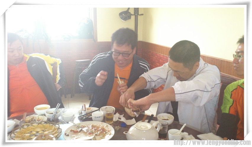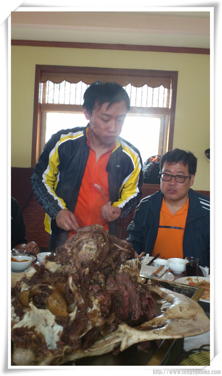 收拾停当,推车上路,一路轻松骑行且按下不表,关键就是今日的主角-------牛头。13个人那真是摩拳擦掌,尽显狼虎之势,最终还是敌不过一颗硕大的牛头,纷纷败下阵来,剩下满满三盘肉和十几个烧饼、一盆粥。总算是吃的尽兴,打包的开心。