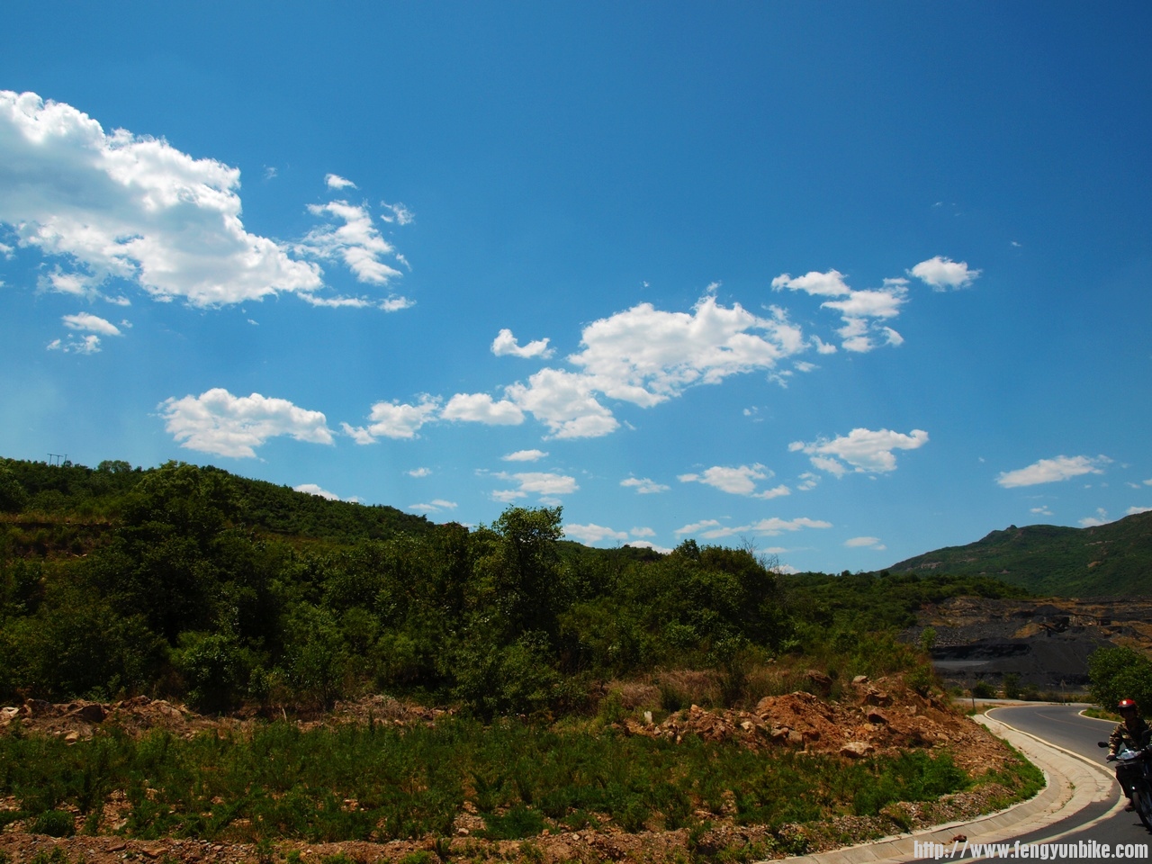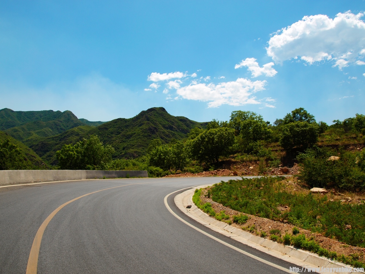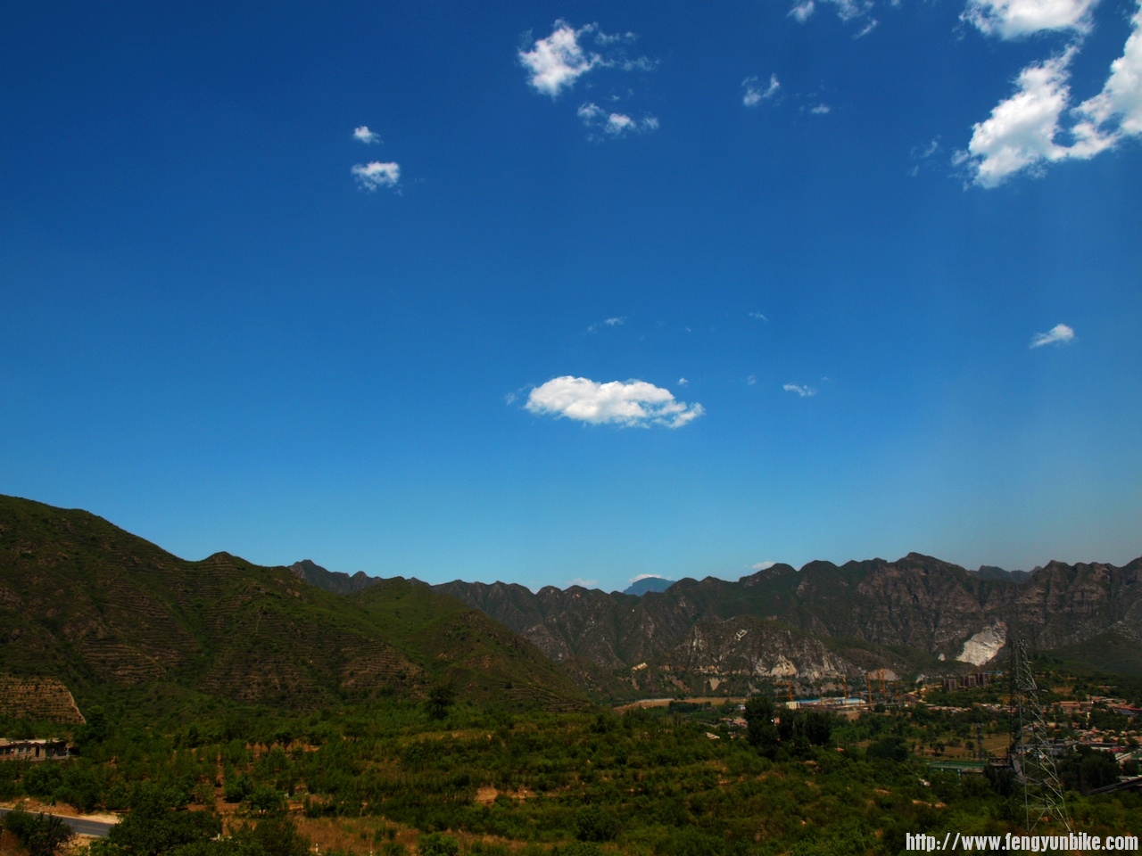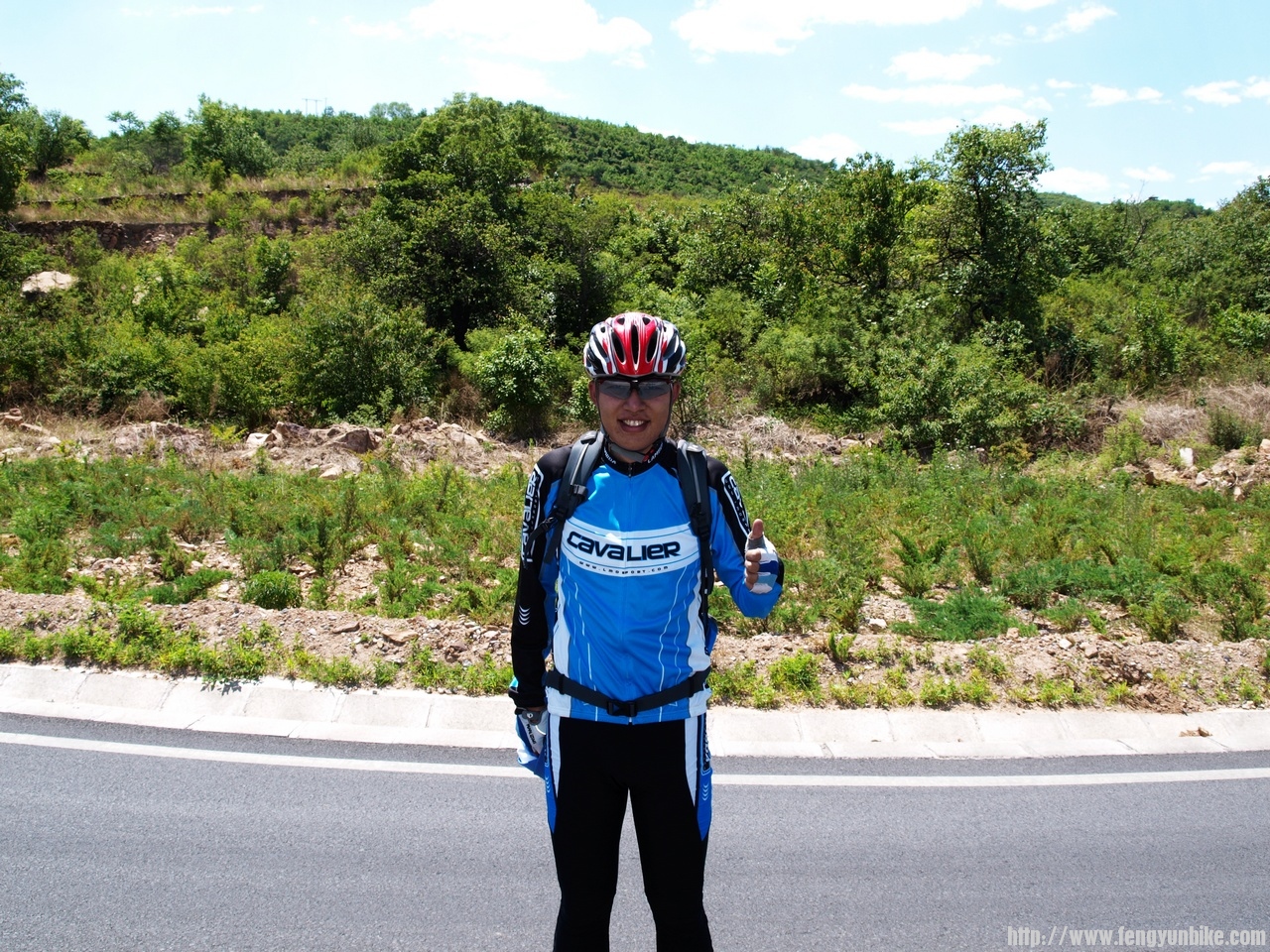 今天老马的人品爆发了, 还没到妙峰山, 后胎就爆了...没辙, 换胎吧, 本来想快速骑到坦礼的, 结果还迟到了半小时{:soso_e113:}, 收上逍遥, 出发前往下苇甸超市补水, 超市门口我看到一哥们一直搬着他的车, 都是人骑车, 怎么这会车骑人了, 仔细一看, 链条断了, 刚好身边有工具, 我们几个人七手八脚截链子接链子, 帮人家搞定了~ 不过这两次的耽搁, 使得我们的出发时间严重的滞后, 到达谭王路的时候已经11点40分了, 大中午爬这个完全没有树荫的路...实在有点自虐...但是既然来了, 那就爬吧...幸好, 今天有风, 而且山上的能见度很好, 天气也还算不错, 一路的风景看着还可以, 由于之前平路骑的太猛, 爬坡的时候大家都没什么状态...骑的很慢, 溜溜达达, 晒着太阳, 蔫了吧唧, 晃晃悠悠的到达了坡顶, 废话少说, 放坡吃饭! 逍遥充分发挥了0.1吨车队队员的天然优势, 以平均时速40+的速度放下去了, 一会就没影了...我们从潭拓寺镇放下去的, 到了分叉口才知道原来已经过了潭拓寺...因为没去过, 所以还是再爬一次吧...呼呼哧哧, 终于爬到了潭拓寺牌坊处, 休息的时候看到一辆欧亚马的小折停在那里, 旁边一位大哥就是车主, 上去攀谈, 原来还是欧亚马车队的元老级人物~呵呵合影留念, 大哥给介绍了一家烧饼夹肉店, 饥肠辘辘的我们赶紧冲去吃饭, 炒饼夹肘子, 拍个黄瓜, 一盘煮花生, 小米绿豆稀饭, 按照风云的严格要求, 虽然很热, 没人要酒, 吃完饭, 放坡回家, 戒台寺留个影, 定慧桥解散~