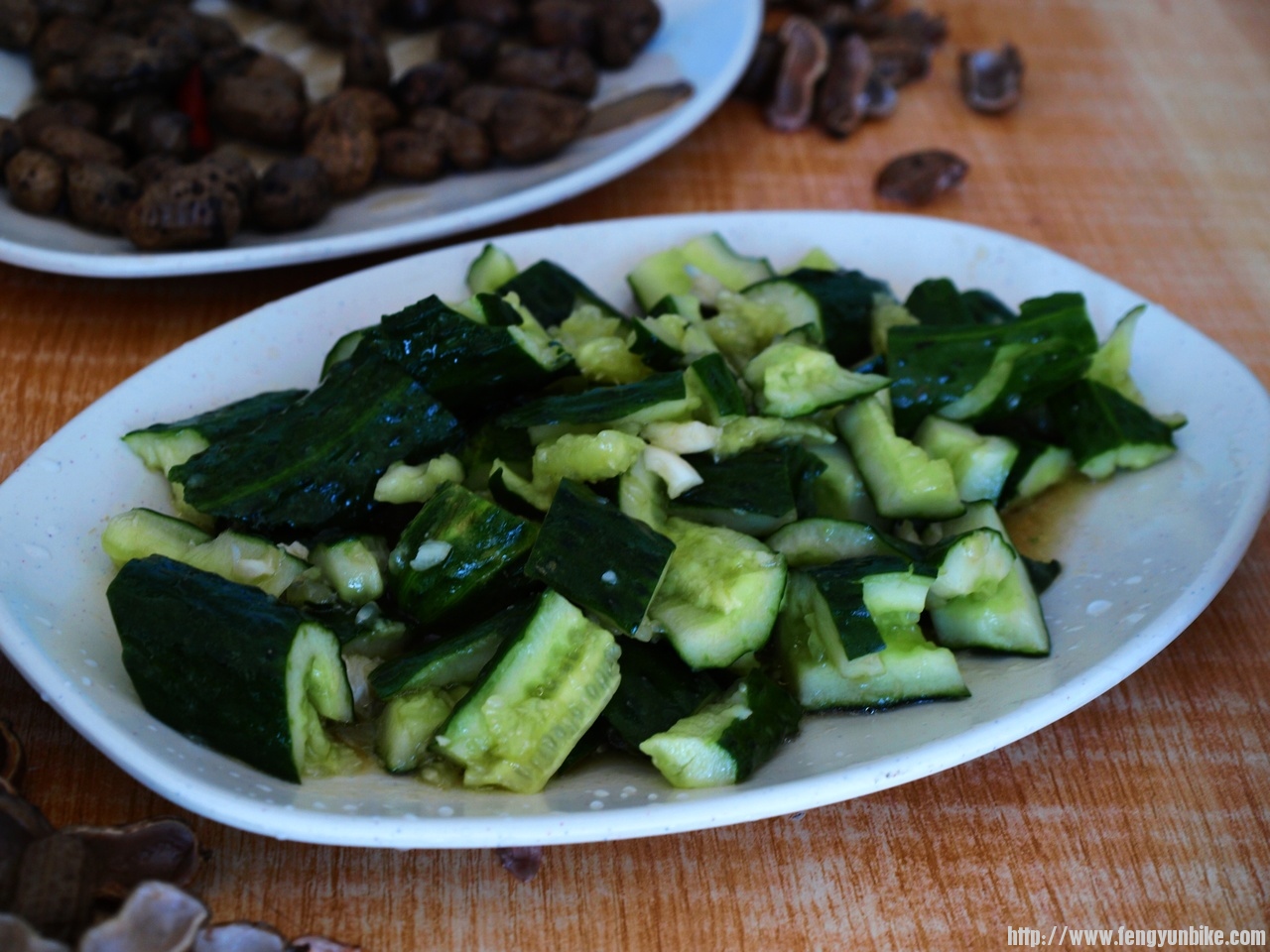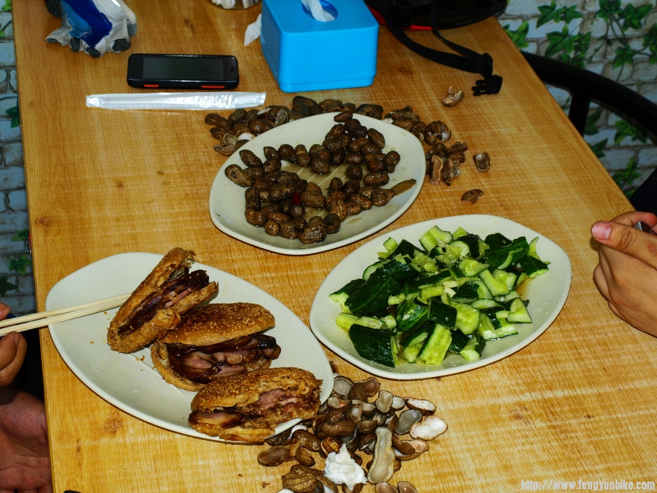 午饭: 芝麻烧饼夹酱肘子肉, 拍黄瓜, 煮花生