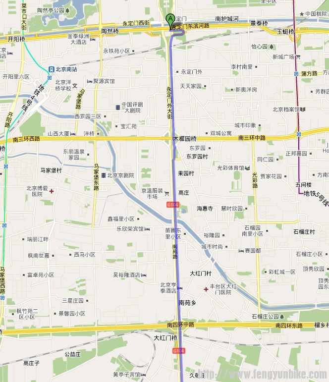 3. 在永定门桥向左转,进入永定门外大街  1.4 公里