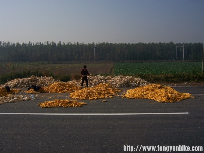 Poke 左腿伸不直了...坐在玉米地里缓缓.单程90.73公里,全程315公里.不能撂到这儿!
