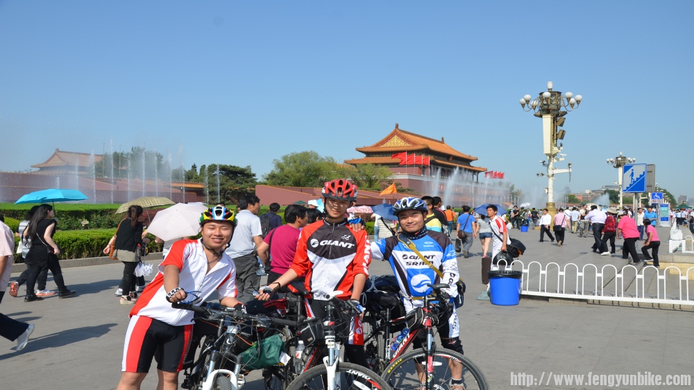 出发伊始,电话杨智,告知还在等待东北骑友消息。偶聊方知需要安装后架,我说这死沉的背包要是背着往返几千公里那不累死!!!(哈哈 临时决定确实没有任何准备) 时间还早,捷安特店,安装后架完毕。10元超市买根尼龙绳,背包捆绑结实。 直接打车,连拦两辆拒载,晕。 骑行回龙观华联门口,黑车120元! 天安门汇合!!! 天津 5月5日3:30天安门城楼,方始出发。 炙热的阳光,拥堵的市区,沿着104国道我们开始了未知的长途跋涉。 19:11,逆风的我们刚到廊坊广阳群安道,牛肉面小馆。补充体力后听说那里美女众多本想万达广场小遛,但目标计划夜宿天津只能舍弃,星夜赶路直奔天津。 这时方才发现,我和杨智都未装电筒,只有一鸣独自。 幸亏俺有头灯,可以依稀照亮,俺前进的道路。 行至杨村附近,明明指南针方向疑问,可依旧前行几公里左右警觉。回看,果然错道。 还是俺的手机地图清楚,刚刚,明明…明明指南针指向东北,还特地确认…可还是疯了似的狂奔…直到看到路边稀缺的人群(一帮15、6岁小孩半夜路边拍照)。真是稀罕,但如救星。为我们指明了前进方向那就是路错了…回骑吧!五公里左右白骑