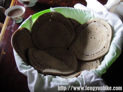 这个荞面摊成的饼,看着很诱人啊,再沾着自制的辣酱吃,看得俺口水哗啦啦滴……