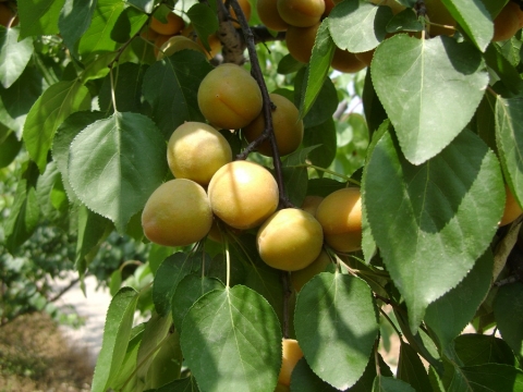这是大黄杏,很甜很甜滴,俺摘的那是野山杏,酸的不得了,除了俺,没人喜欢吃啦。