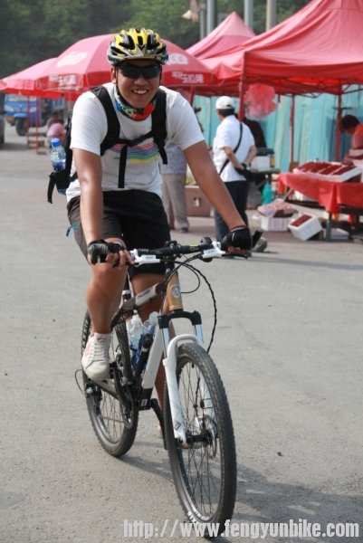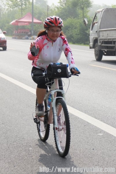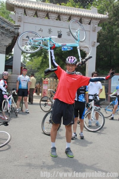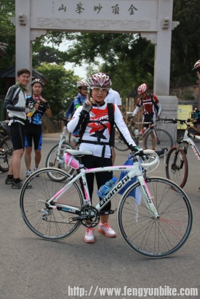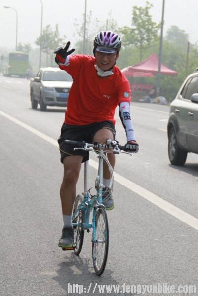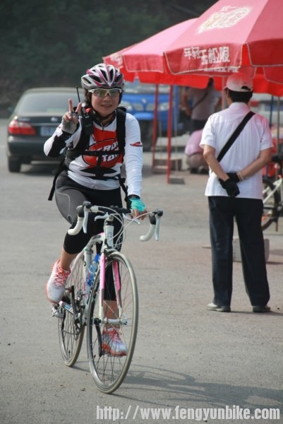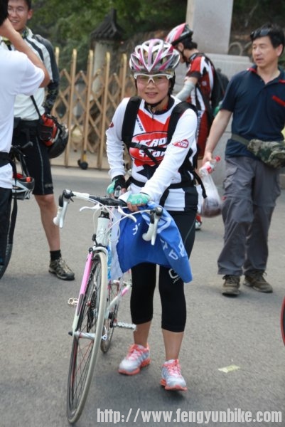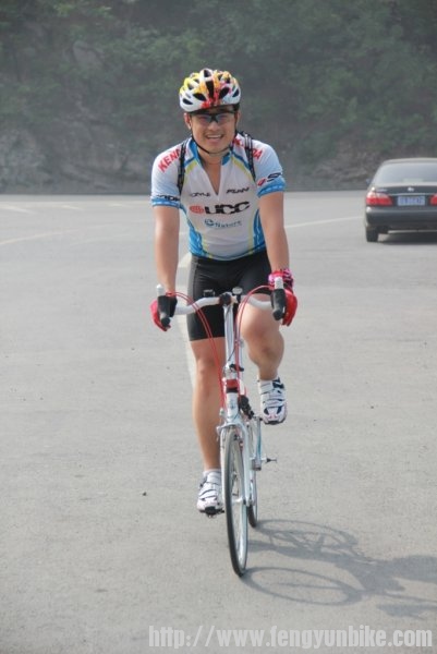 时至二日,佛晓梦醒,昏昏然也,再无睡意,静待天明,起床洗漱,收拾行囊。时过六点,推车出门,一路向南,狂飙三十,至定慧桥,会和骑友。东南西北,骑奔于此,天下骑友,情如一家。一刻之后,人员齐聚,优雅折叠,贵雅公路,典雅山地,各色车辆,炫彩靓丽,各路英豪,意气风发,美女二人,混于其中,濯濯如春花月柳,滟滟似出水芙蓉。另有一人,身体瘦弱,着红黑衣,骑银折叠,询问得知,新石头也!折叠九子,风云天下,有此QS,压力非常!