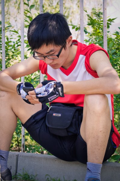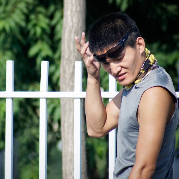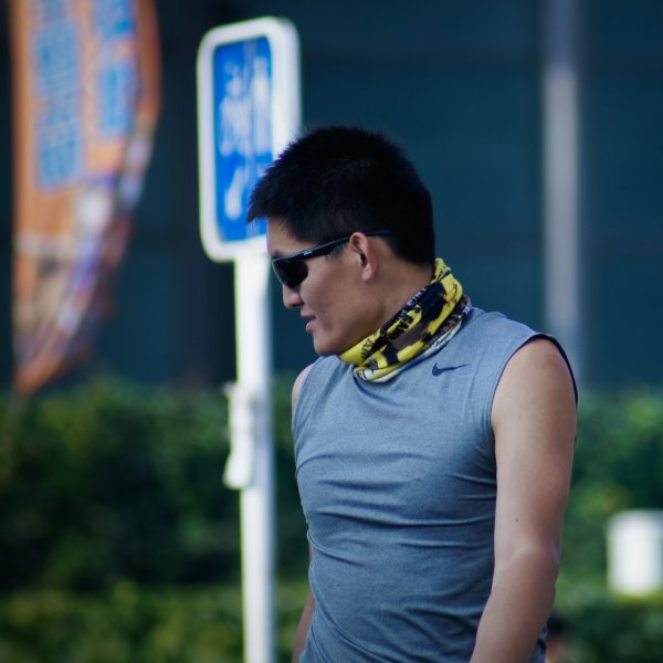 酷酷的胖子  在叉路口辛苦的等人 很有责任心的胖子