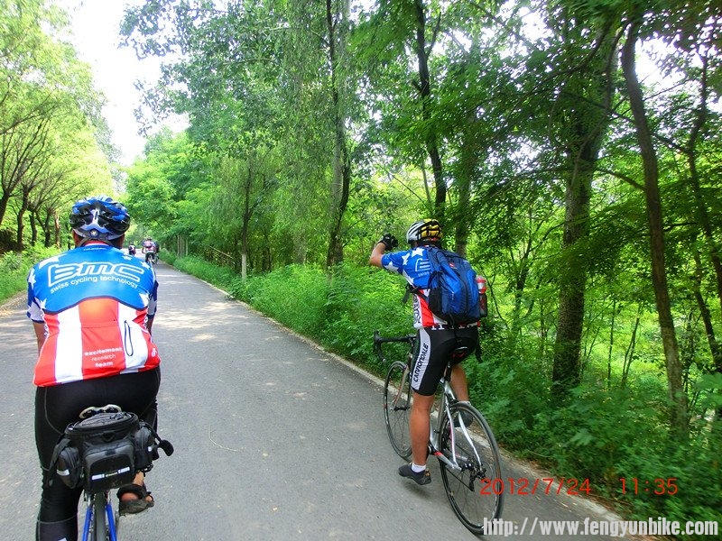 7.21一场罕见的大暴雨,把周末的骑行计划全都打乱了。爱好骑车的人几天不骑行,心里就憋得慌,浑身的不自在。驰鹿队一些“离、退休干部”,“在家待业者”,下夜班不上白班的以及能自己掌握时间的闲人们一商量,决定周二(7月24日)组成小分队出城,直奔怀柔圣泉寺,一来是为成长周日的带新人活动踩点探路,二来是出城呼吸一下新鲜空气,休闲、腐败、活动一下。参加的八仙是:老好人、汪哥(栋宸)、满队、老菜车、北京老石、子孓、老海骑行、布丁(按八仙寿龄排序)。 周二阴间多云,微风习习,最高温度30度,非常适合骑行。早九点大家在京密公路的枯柳树环岛集结后,一路向东北方向的怀柔杀去,穿过县城西边,绕道怀柔水库围湖公路骑行,这里环境优美,空气清新,树木参天,水面清澈,真是居住和休闲的好地方。在这居住的人一定长寿,但老海不同意这个观点,他说这的人也得死,但他们是美死的! 在去圣泉寺之前,顺路去了一趟红螺慧缘谷,它位于怀柔区甘涧峪村。在这里可以寻幽览胜探古,参禅礼佛。这里有有著名的“红谷八景”:佛石问天、子母苍松、石猴踏浪、通天水梯、圣水源泉、弥勒仙境、百合朝宗、秦碳遗窑。大量的野百合在此生长,每年花开之时,长达1500米的野百合生长带姹紫嫣红,香气扑鼻,令人陶醉。我们骑车经过了第一道大门,没人理会,继续沿着漫坡路向上骑,见到了观音石像,在观音的监督下有人收费了,25元一张门票,我们的原则是:卖票不买,收费不进。照完合影后,掉头走人。 出了慧缘谷右拐骑过一个小慢坡路就到了圣泉寺。圣泉寺据说在我国有三座,在印尼有一座。北京的圣泉寺即圣泉山观音寺,为一方名胜。相传始建于唐代,复修于明代(有碑文记 载),以后历代都有修葺。寺周围南松北柏,繁盛苍翠,为北斗七星点化。寺内圣泉古井,寺前滴水泉,是韦驮菩萨背来。寺小神奇旺,境深灵迹多,历来受到众多人们的信仰和供奉,自古以来就是北京地区著名的观世音道场。寺内为规整的两进四合院。前为山门,规模虽小,但三门并峙,抵近南山。中门内仅一丈甬路,便是一间正殿,谷称韦驮殿,正供弥勒佛。出韦驮殿后门,是正院,北面三间两进正殿为大雄宝殿,正供佛祖释迦牟尼,配供文殊、普贤二位菩萨。正院东西各三间配殿,西厢正供南海观音,东厢正供如意轮观音。院落不大,建筑雕梁,精雅紧凑。正殿门前左右石碑各一,左为明代成化年功德碑,右为清嘉庆年功德碑。右碑前一古井即韦驮神背井。井口漫砌石板,麿砺光滑,井迷木质辘轳,俱为古物。据民间传说,唐代著名女将樊梨花镇守幽州北境。一次与北国交兵,被困九龙山(那时圣泉山还叫九龙山)下,敌强我弱,命悬一线。情急之中,樊梨花合掌急呼“观世音菩萨显灵!观世音菩萨救我!”观世音菩萨闻听呼救,立即点化九龙山的九条伏地青龙,请它们施救,成就殊胜因缘。九条青龙欣然领命,立即兴云布雨,在军阵上空下起倾盆大雨。交战双方被大雨浇得睁不开眼抬不起臂,自顾不暇。乱军中,樊梨花率闲兵蒙头急奔,突围而云。事后,樊梨花感念观世音菩萨救命之恩,遂在九龙山后云兴之处,为观世音菩萨建寺塑像,以为永久供奉。只可惜现今社会物欲横流,到处充满着商业气息,昔日清净的寺庙如今已喧闹无比,就连学生的夏令营也办在了此地。入得殿去还要收门票26元。只能照相合影留念后,转身离去。 此时已近午后时分,饥肠辘辘,返程骑回怀柔城里,直奔饭馆去品尝那早已垂涎的鱼头泡饼。一通胡吃海塞,水足饭饱,海阔天空后,骑车返京,返回到枯柳树环岛解散。今天还不错,每次出行必扎公路车胎的老菜车,出发前处理了一下已经鼓包的外胎,骑行一天,车胎表现良好,没有扎胎。看着时间尚早,布丁和我陪着老菜车去买他那提心吊胆的公路外胎,跑了几家车店,也没有买到合适的。天黑了下来,布丁有事先行回家。我和老菜车直杀南锣鼓巷,去吃卤肉饭,好久没去,也涨价了,25元一份了,但还是那样好吃。饭后钻进烟袋斜街,夜游了后海,那里永远是那样的喧嚣和热闹。 我住在北三环,全天骑行了150.9公里,还是比较休闲。我曾经说过,跟着老海骑行就有酱牛肉吃,最逗的是,今天集合出发后,老海并没有提及酱牛肉的事,大家也没好意思问。等吃完午饭了,老海想起来了,说我这还背着酱牛肉呢,得,背了一路,齁沉的,还是忘了拿出来吃,只能再背回去吧,这位大仙呀! 总结:圣泉寺是带新人骑行的好地方,全是大平道,没有坡路。但是相对纯新人来说,骑行距离较远,如果没有骑过远道,体力不支的车友要慎重考虑报名。