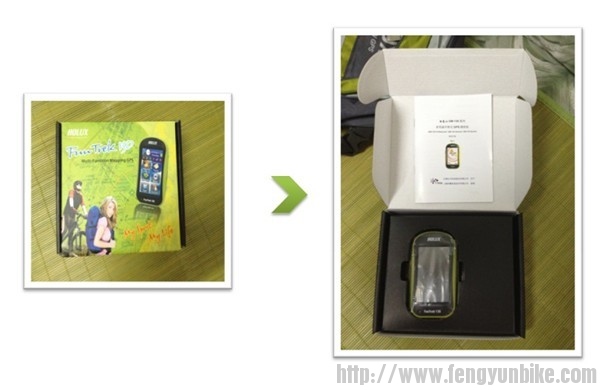 ①FunTrek130主机;②ezTour软件光盘;③快速操作手册④详细操作手册;⑤保修单;⑥锂电池一块;⑦自行车专用支架零件;⑧充电器及通用USB线;⑨便携袋。