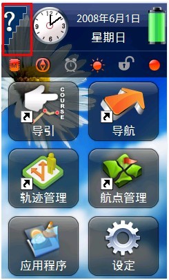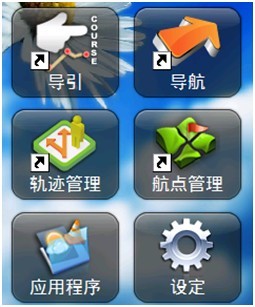 Ø  主要使用“导引”、“导航”、“轨迹管理”、“航点管理”、“应用程序”、“设定”;