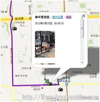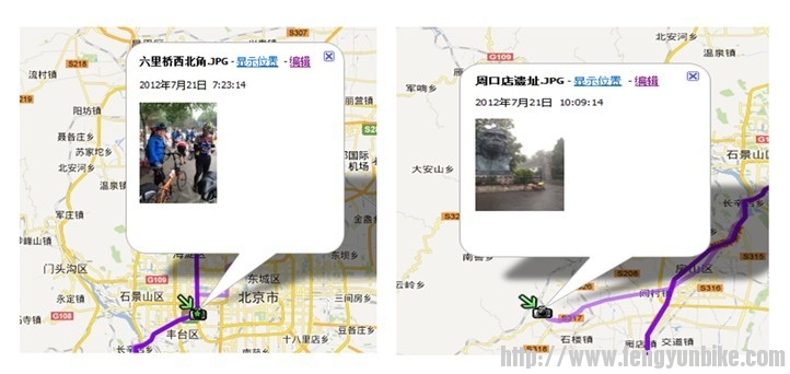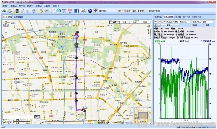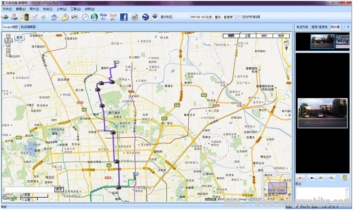 4)回家后在电脑上,将沿途拍摄的照片,导入轨迹内,一张带有图片的路线做好了: