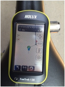 2)出门先开机搜星后,选择轨迹,设好起点和单车模式,下面就是沿着轨迹开始骑行了,(GPS还没有装上架子哪也不妨碍我的拍照,座位先给它用)