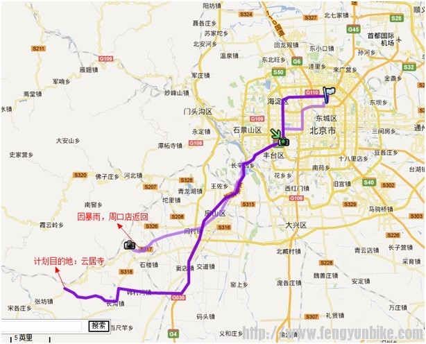 活动计划是周三(7月20日)就做好滴:和平里-六里桥-云居寺打算体验一下轨迹引导和爬坡。前一天傍晚看天气预报:21日晚上北京大雨,计划早去早回,赶在大雨来临之前完成任务。