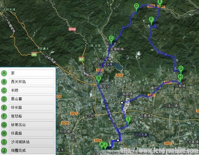 全长:95公里历时:5小时(14:00——19:00) 难度:B+ 难点:黑山寨,慈悲峪两座山 路线:沙河—昌平-长陵-沙岭-九渡河-慈悲峪-兴寿—沙河城铁站