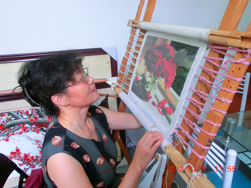 绣花大师正在实际操作“乱针绣”
