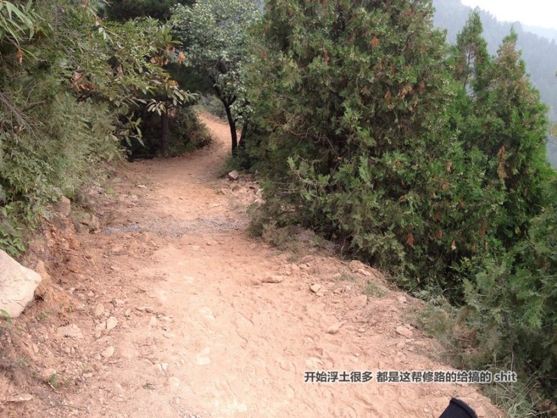 说实话 香山道目前为止我只上过五次, 第一次独自一人,沿着防火道(后来才知道那叫防火道)瞎转悠,突然看到一片越野路面一下子就扎了下去跑,没骑多久就摔了 撞到大石头人车整个空翻过去,眼镜撞碎,右脸破相,前轮撞爆胎,这是我第一次上香山 第一次没戴头盔。 第二次上香山是上次摔车的2周后,好了伤疤忘了疼,又一个人兴冲冲的从植物园北门附近爬了上去,(后来我发现我走的正是老马道,难怪那个坡...........那么变态{:soso_e134:}),依然沿着防火道瞎转悠就转到了快活林, 遇到一老车友,一起顺着果快上山的路下了山。第三次就是模式口反爬的比赛了 这个就不用我说了,还一不小心拿了个第三名捧个气筒回家。第四次是下大暴雨那天 虽然也是独自一人瞎转悠 不过终于找到了能越野的路 那天玩的很HIGH,下山后就发现北京四处都是飘浮着的汽车 以为2012了。第五次就是22号和越野阳光一起了,也就是从那次起之后,我心底里就打算找出香山所有的越野路线 然后做个路书 给下面陆续加入的新车友提供参考。因为自己就是从一个新人走过来的 在香山不识路实在是相当不爽,只能沿着水泥路瞎转悠。