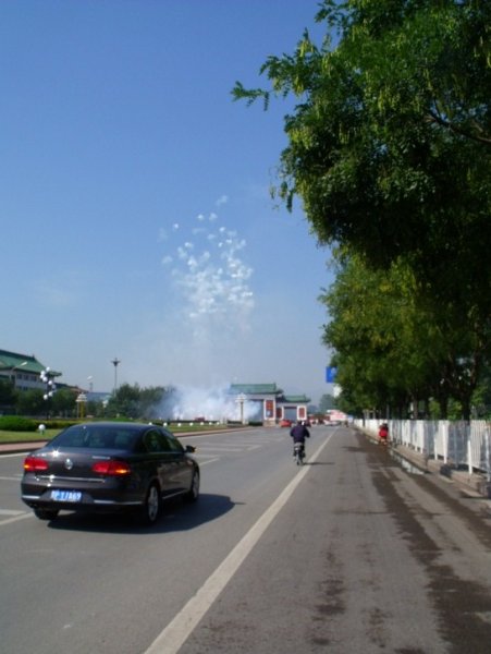 鞭炮太热烈了,我的骑行帽 要震掉了,赶紧扶好。