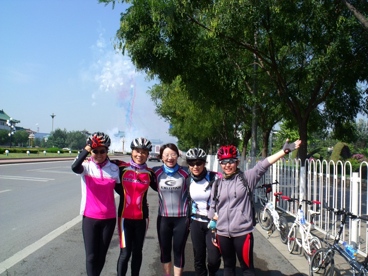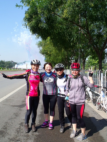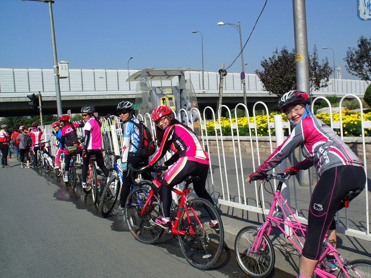 骑行插曲:猫蜜,路遇尾随跑步的一名男某,不知是真的跑步还是要进行行窃,不过还是提醒如果走夜路最好结伴,这样安全些。 人员到齐后,豪大亲自给大家调试车子。大家整装后,精神抖擞的出发了。 在此赞一下领队{:soso_e179:}! 热心协助大家。 且不说首钢人民的鞭炮礼花的欢迎仪式,还是姐妹骑车途中,路人羡慕的眼光;话说一路亮丽的风景,就在城市中轻松惬意,整齐的飘过,最终全体成员全部登顶。