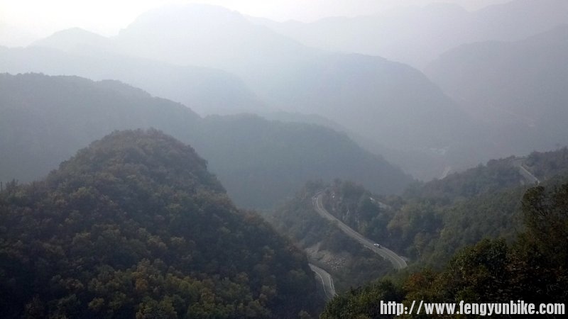 到驴友广场时已有一些自驾游人在此合影,补充了一瓶脉动和矿泉水接着向上骑,最后这几公里感觉就在山梁上,两边群山隐约在雾气中,非常壮美。