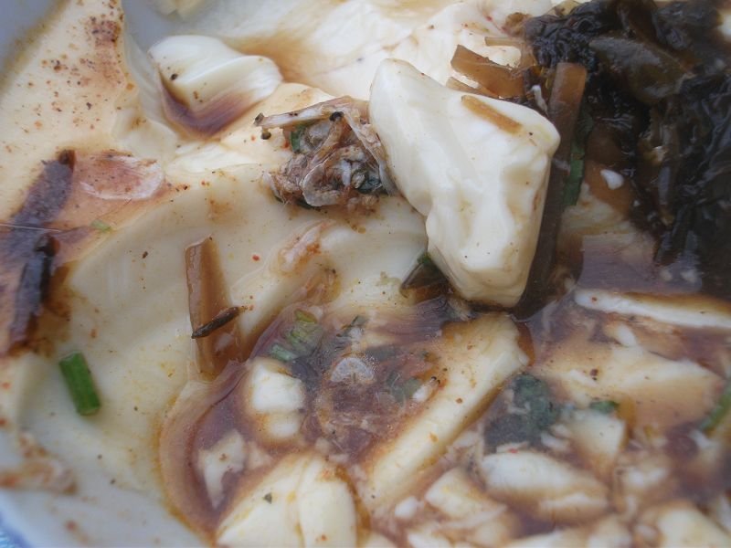在“雕像”附近有家早餐馆,这里的早餐馆的豆腐脑不得不提一下。别的地方的“豆腐脑”很多都是用石膏或者卤水点过,然后等凝聚后就完事了。而这家的豆腐脑还要在蒸笼上慢慢蒸出来,然后的它的口感就是异常的嫩滑有一种入口即化的感觉,类似于鸡蛋糕。真的很赞。价格也不贵1.5元这么一大碗。