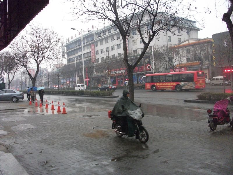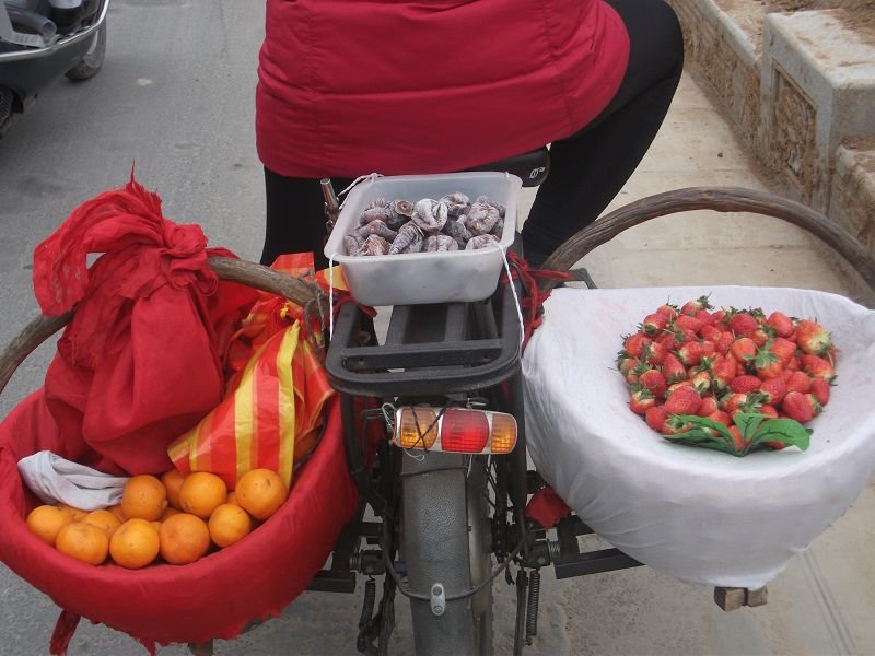 因为洛阳的中央大道“洛龙大道”正在修建所以交通感觉烂糟糟一片。回去的路上刚好看到前面有骑车卖草莓和柿子饼的本打算拍完照买点,结果拍完照时候卖水果的大姐看到了,然后用异常警惕的眼神看着我,等我吧相机收好。正好绿灯亮起还没等我张嘴,大姐嗖嗖就骑走了。难道她看到我的光头了?{:soso_e103:}
