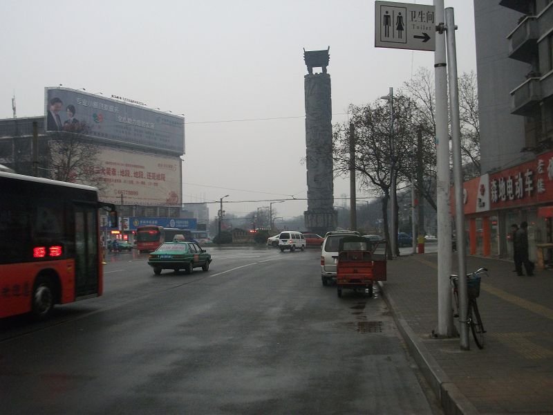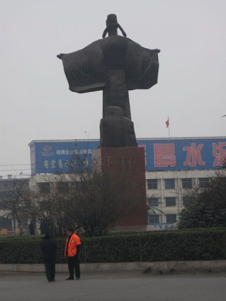 巩义算是在山包包上的城市,昨日放坡进入市区外围找了家便宜的旅馆住宿,那第二天不用想出门就是爬坡- -!在城里转悠了30分钟才找到G310的岔口。而这个岔口最明显的标志就是“耶稣像”。