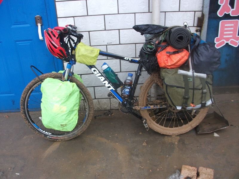 进去15分钟的路程车子无法继续前行,眼睛所到之处全是泥泞道路。而有小车路打算拦车问路,却没有一个停的,好生失望。没有办法只能原路返回,回去的路也是异常艰难,大约1公里的路我却走了1个半小时才硬生生的把车抬出来,出来后只能用冰冷的雨水把车子清洗完毕,此时发现后夹器失灵搞了半天也没弄好,不过好在此时终于拦下一位路人问明情况,才知道这里新老国道改道。而我走的是新国道,而老国道仍然再用没有停用。悲催啊,我这是闹哪样啊。不过好在知道了明确的路线。