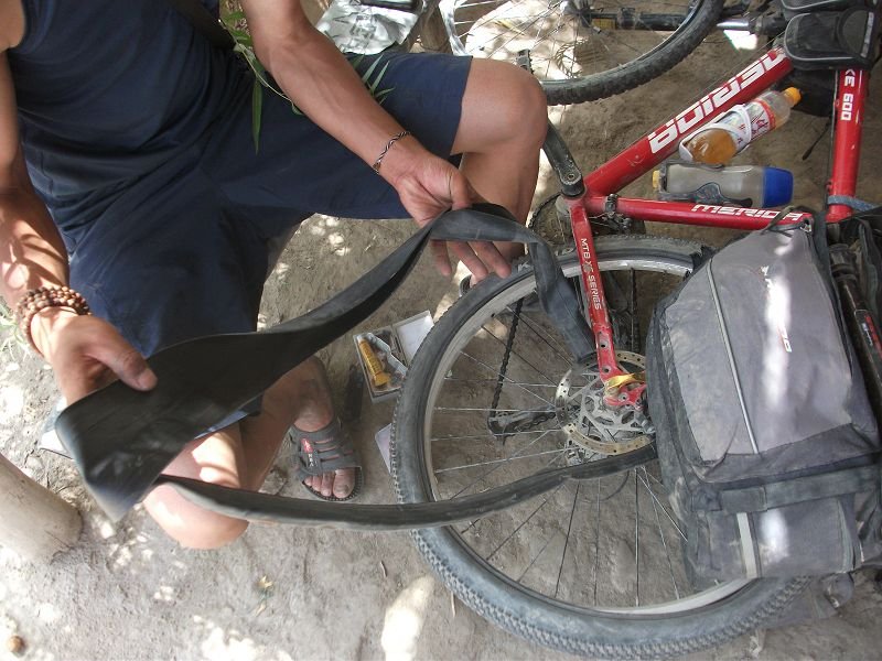 (图摄于新疆莎车县)请记得带一条好点的内胎上路,15元的建大足矣。这是我第一次见到爆胎爆的这么销魂的。