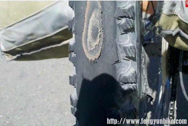(图摄于新疆阿拉山口段)请没事的时候勤查看你的外胎磨损状况。不要认为还能对付用。有些事永远超出你的预期。