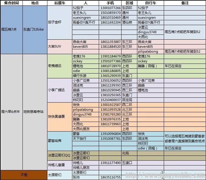 6、早上集合后会有个车检,车况不好者,予以劝退,请谅解;